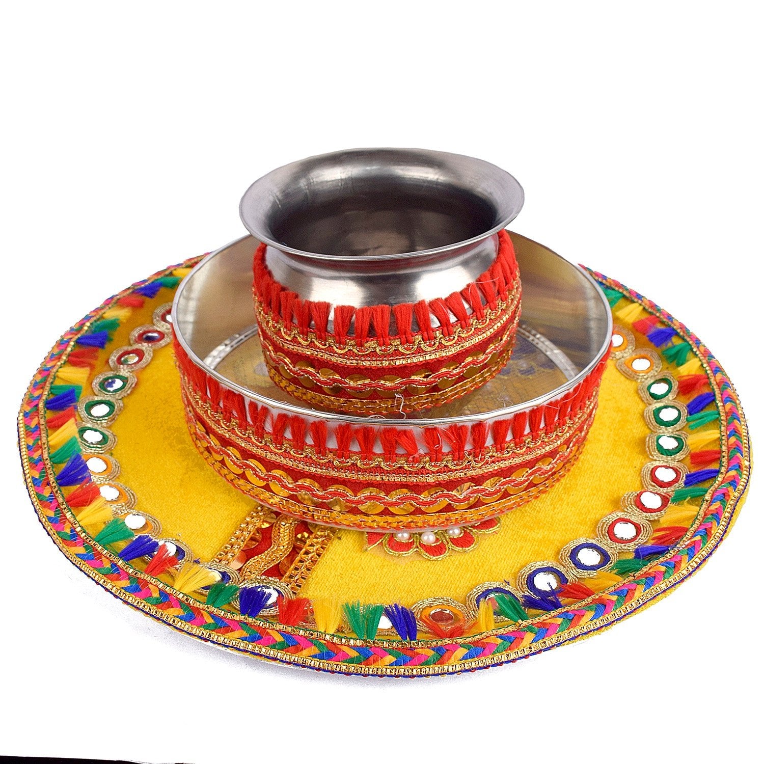 Item Name: Handcrafted Yellow Karwa Chauth Thali Set - 3pc