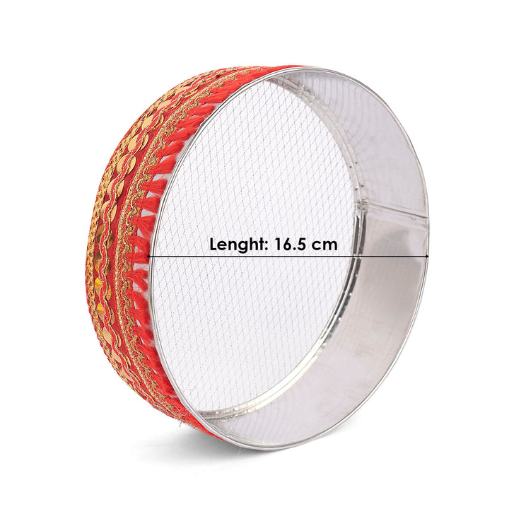 About Product: Karwa chauth beautiful Steel thali set includes a thali, Lota, Sieve for traditional and trendy way of karwa chauth pujan for all the married / engaged ladies and girls. Be attractive by using such a decorative piece of thali of puja for your love/ life. This thali can also be used on Diwali/ Deepawali Pujan. Karwa chauth thali set, karwa chauth thali, karwachauth thali platter, karvachauth thali platter, pooja thali set, steel puja thali set, complete karwachauth set, karwachouth set, designer thali set,hanmade thali set, Indian traditional set, karwachauth thali.