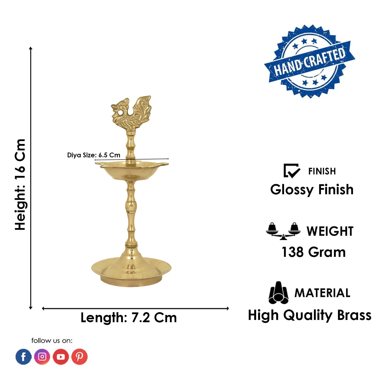 6.5 Inch Brass Peacock Kerala Diya | Brass Peacock Diya | Kerala Pooja Lamp | Traditional Brass Oil Lamp | Small Brass Diya | Spiritual Kerala Deepam | Temple Brass Diya | Indian Ritual Lamp | Brass Decorative Lamp | Peacock Design Brass Diya | Brass Festival Diya | Brass Oil Deepam