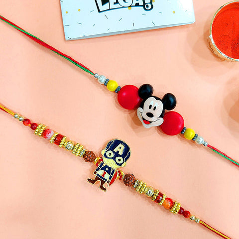 From the cheerful world of Mickey Mouse and Minnie Mouse to the heroic adventures of Spider-Man and Batman, our Kids Rakhi collection showcases an array of popular cartoon characters. Whether your child is a fan of the brave and mighty Avengers or the enchanting princesses from Disney's Frozen, we have Rakhis that will make their eyes sparkle with joy.
