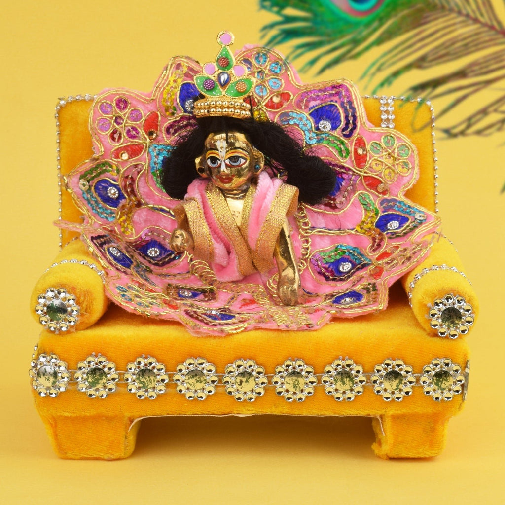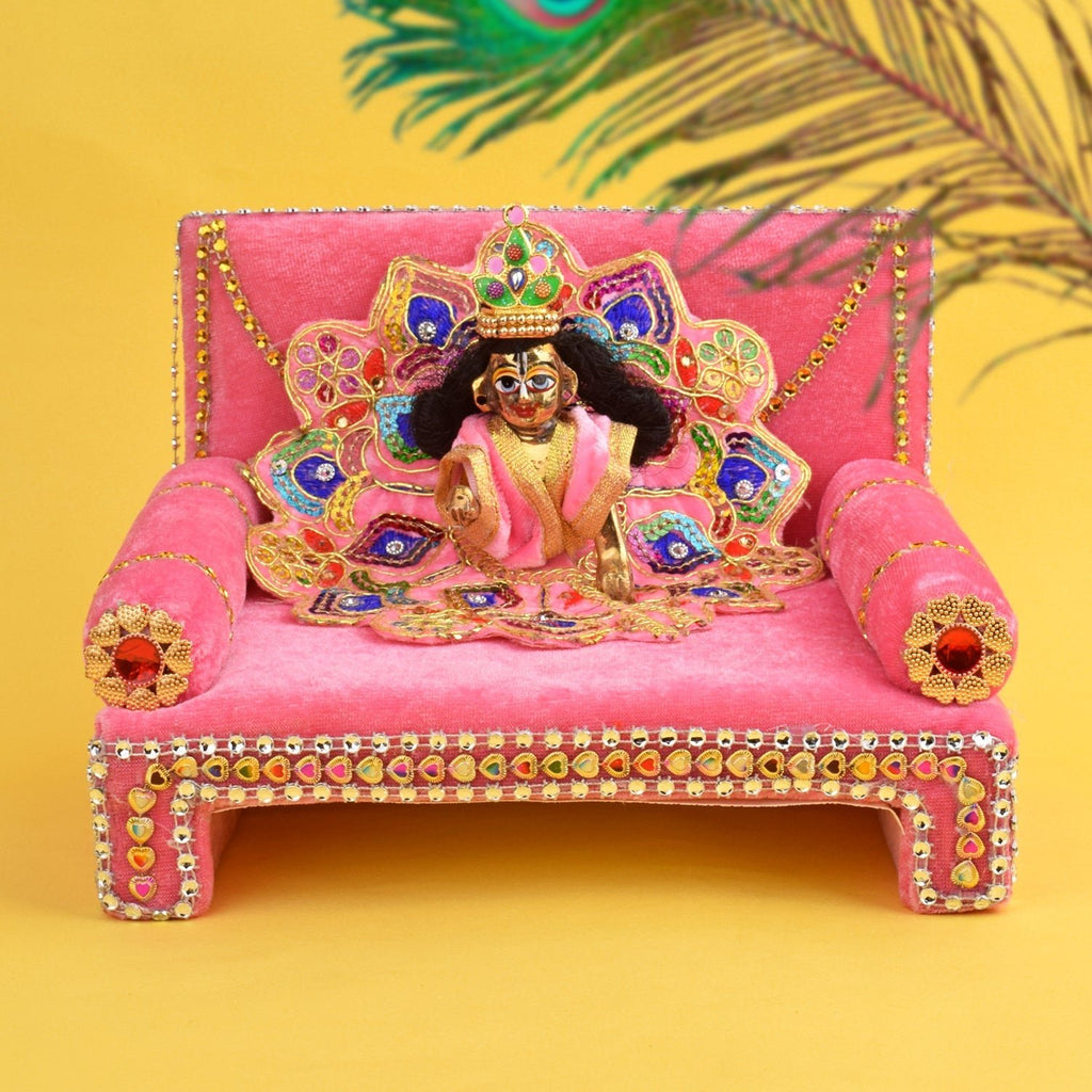 Give your adorable Laddu Gopal a regal seating arrangement with our exquisite Laddu Gopal Singhasan. Crafted with precision and adorned with intricate carvings, these singhasans provide a comfortable and majestic seat for your beloved deity.