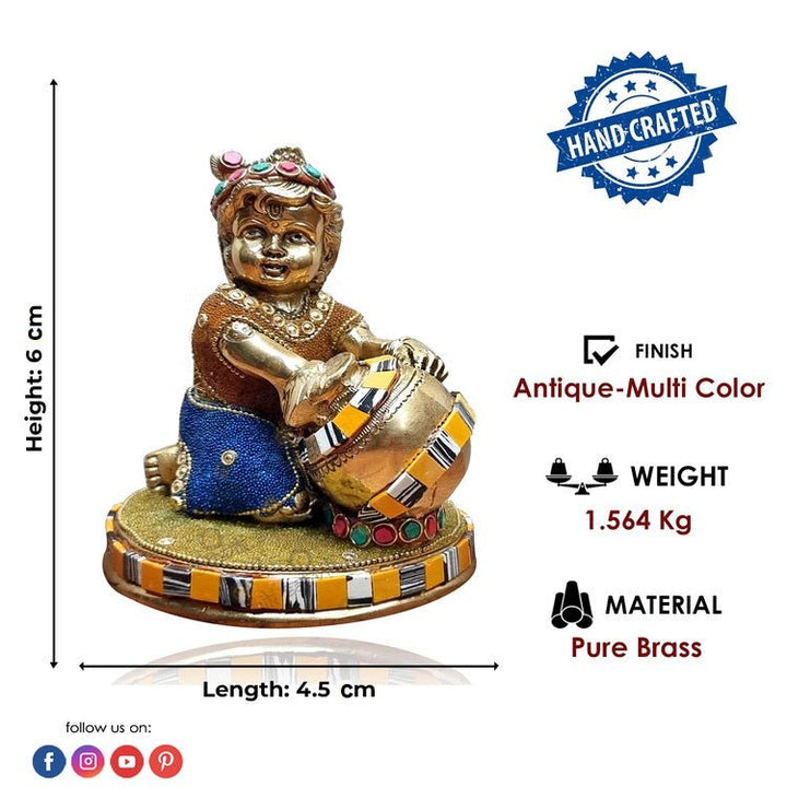 • Item Name: Pure Brass Kanha Ji with Matki Statue