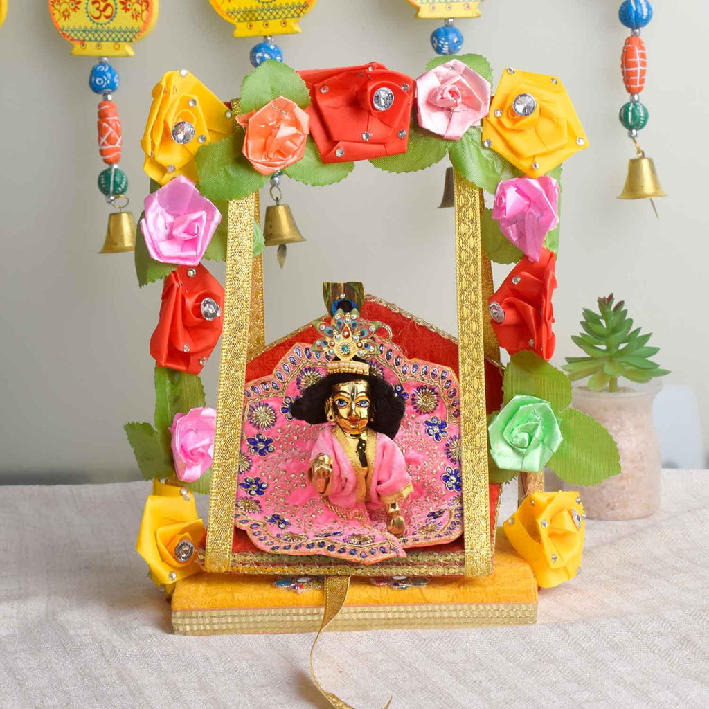 Bring a touch of elegance and vibrancy to your Laddu Gopal's abode with our Laddu Gopal Phool Bangla. These intricately designed floral canopies add a beautiful backdrop to your deity's altar, enhancing the overall spiritual ambiance. - Laddu Gopal Singhasan: