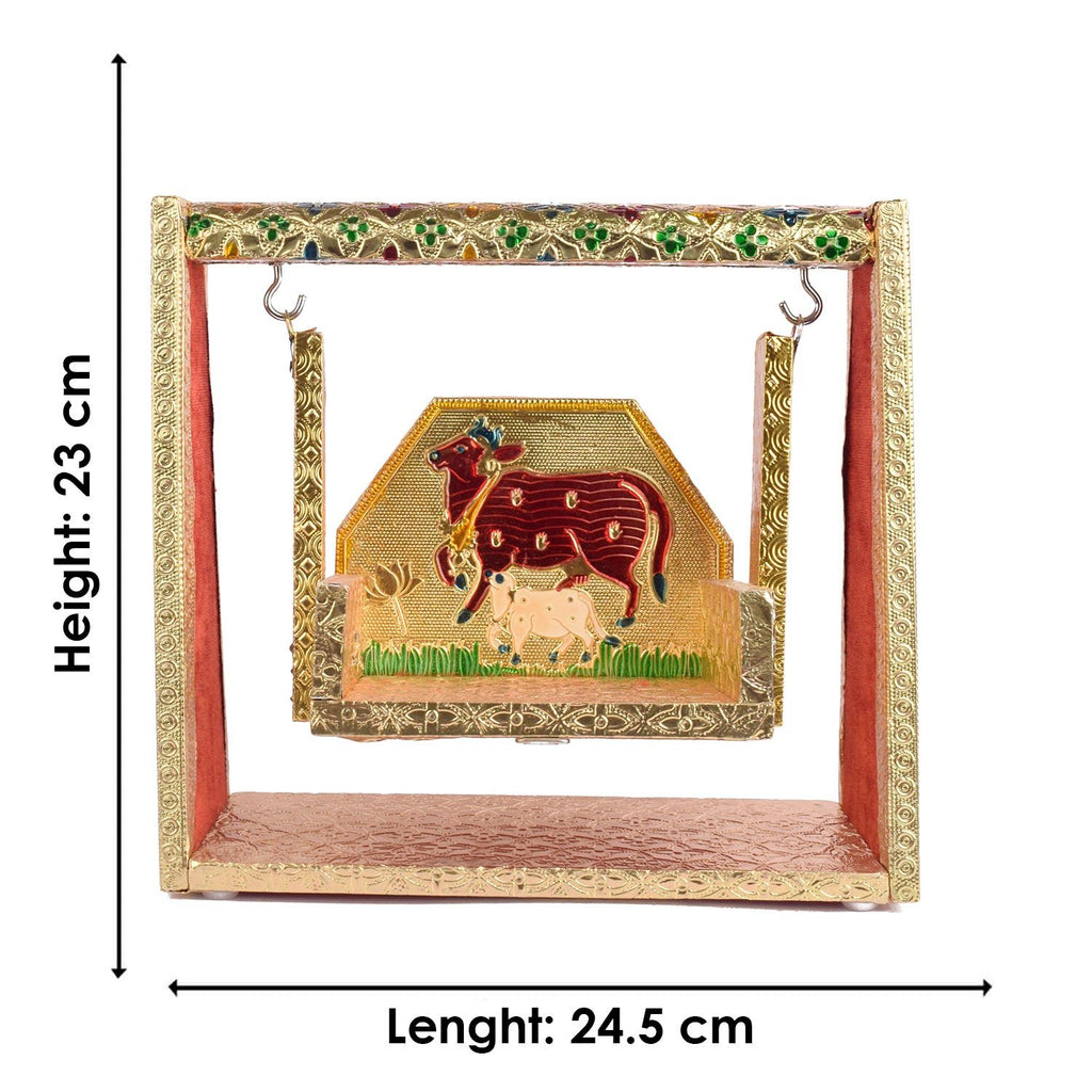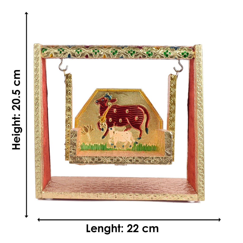 Perfect for placing Laddu Gopal Ji or Ganpati during festive occasions or daily worship, this jhula is handcrafted by skilled artisans from West Bengal and Uttar Pradesh. Its rich colors and artistic finesse make it a striking devotional accessory.