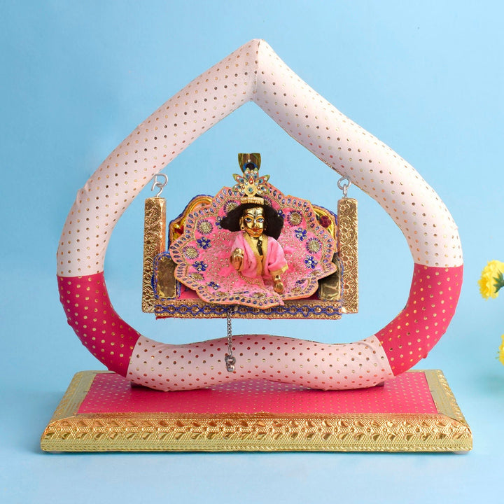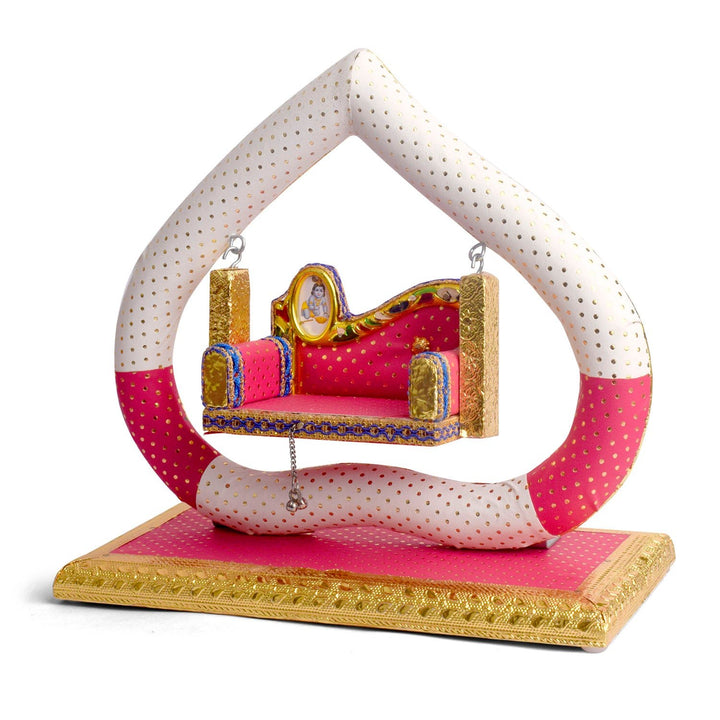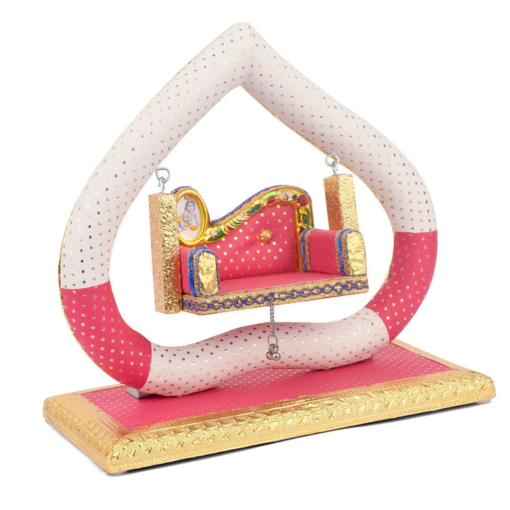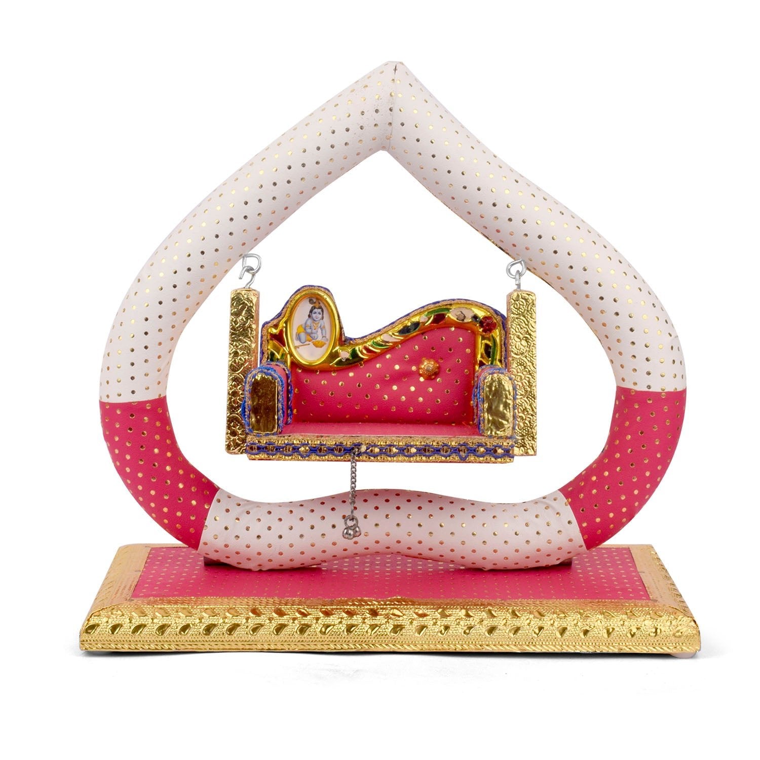 Lovingly handcrafted by skilled artisans from West Bengal and Uttar Pradesh, this jhula is more than just a decorative item—it is a symbol of devotion. Its detailed craftsmanship and balanced structure make it suitable for homes, mandirs, and festival pandals. A perfect blend of tradition and simplicity, it brings spiritual grace to any pooja setup.