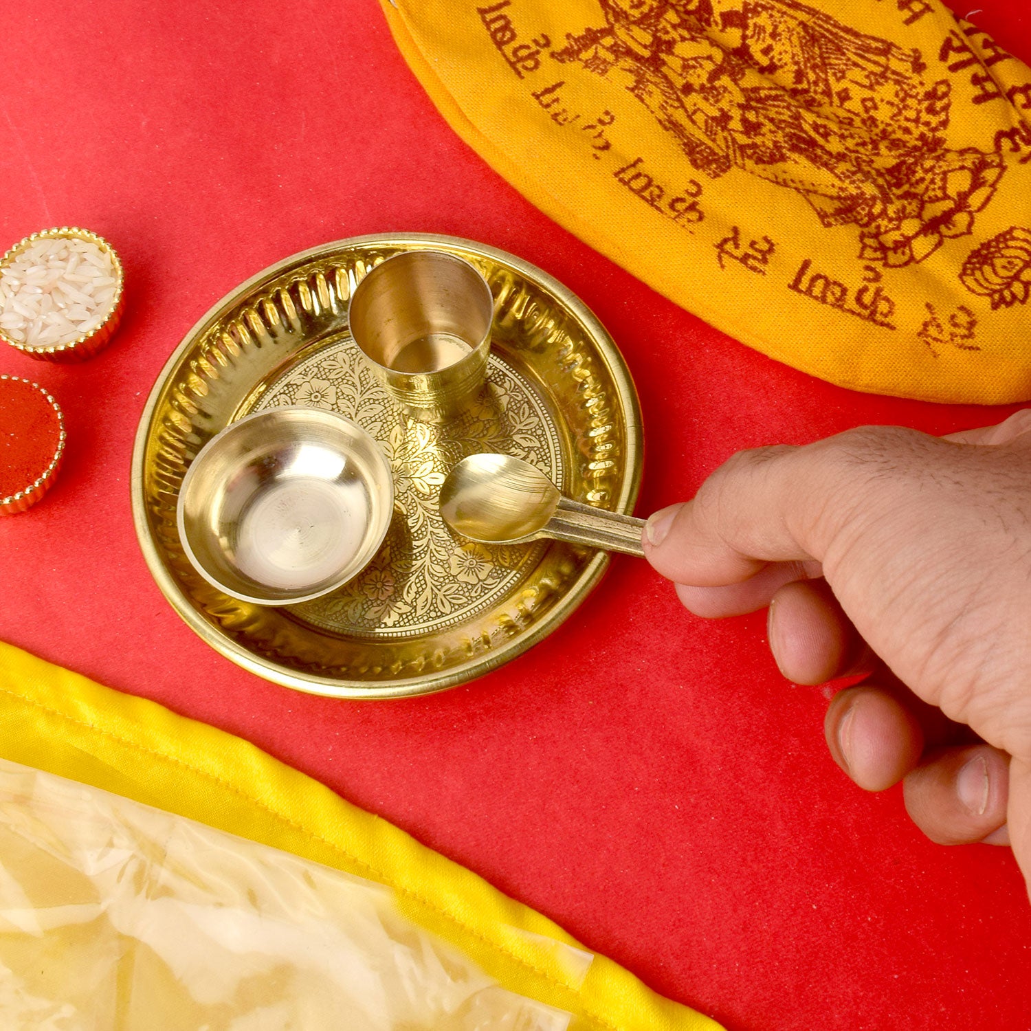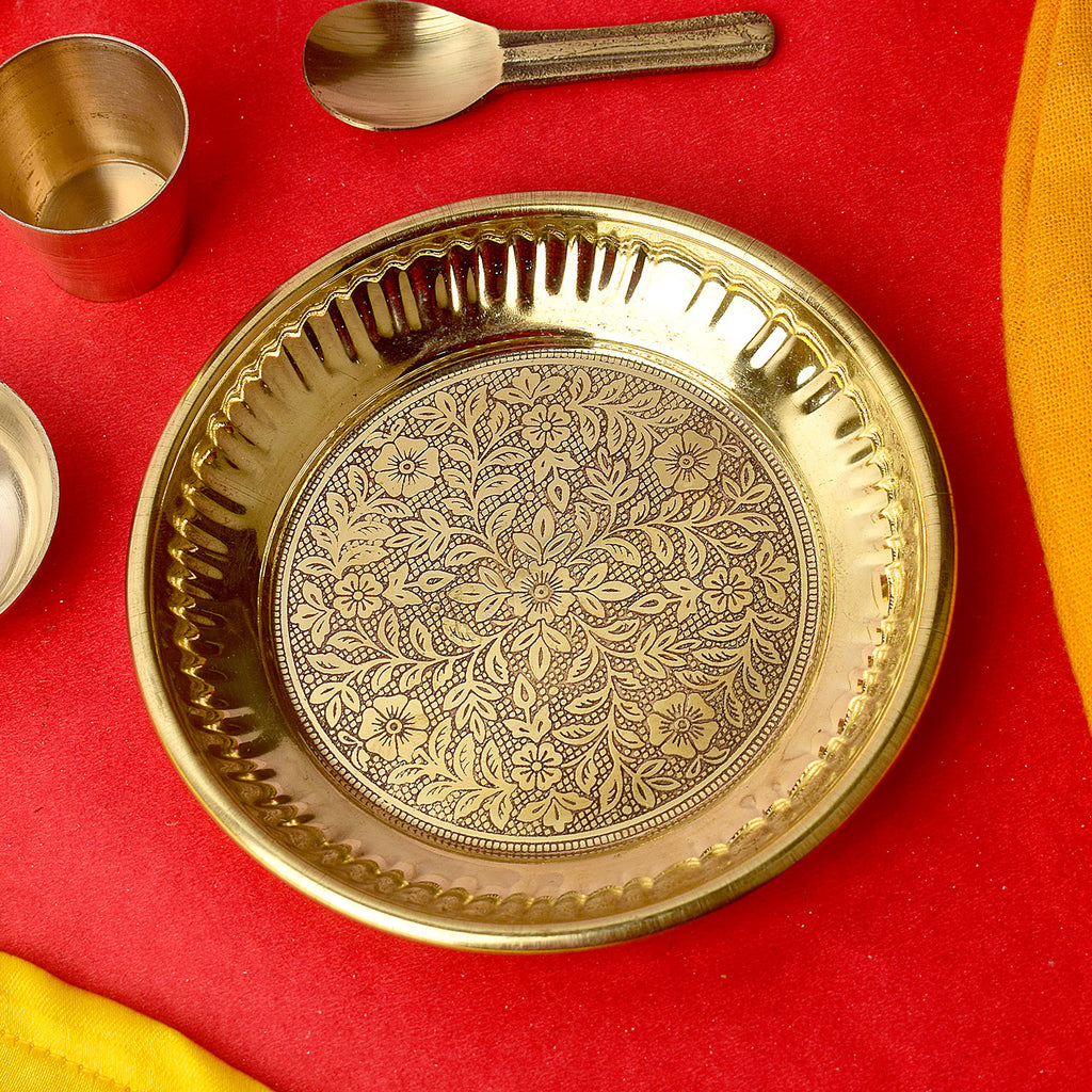 • Material: The Brass Puja Thali is made from High-Quality Brass Material