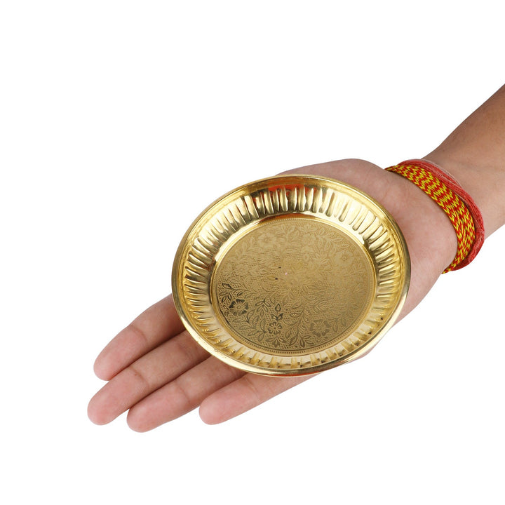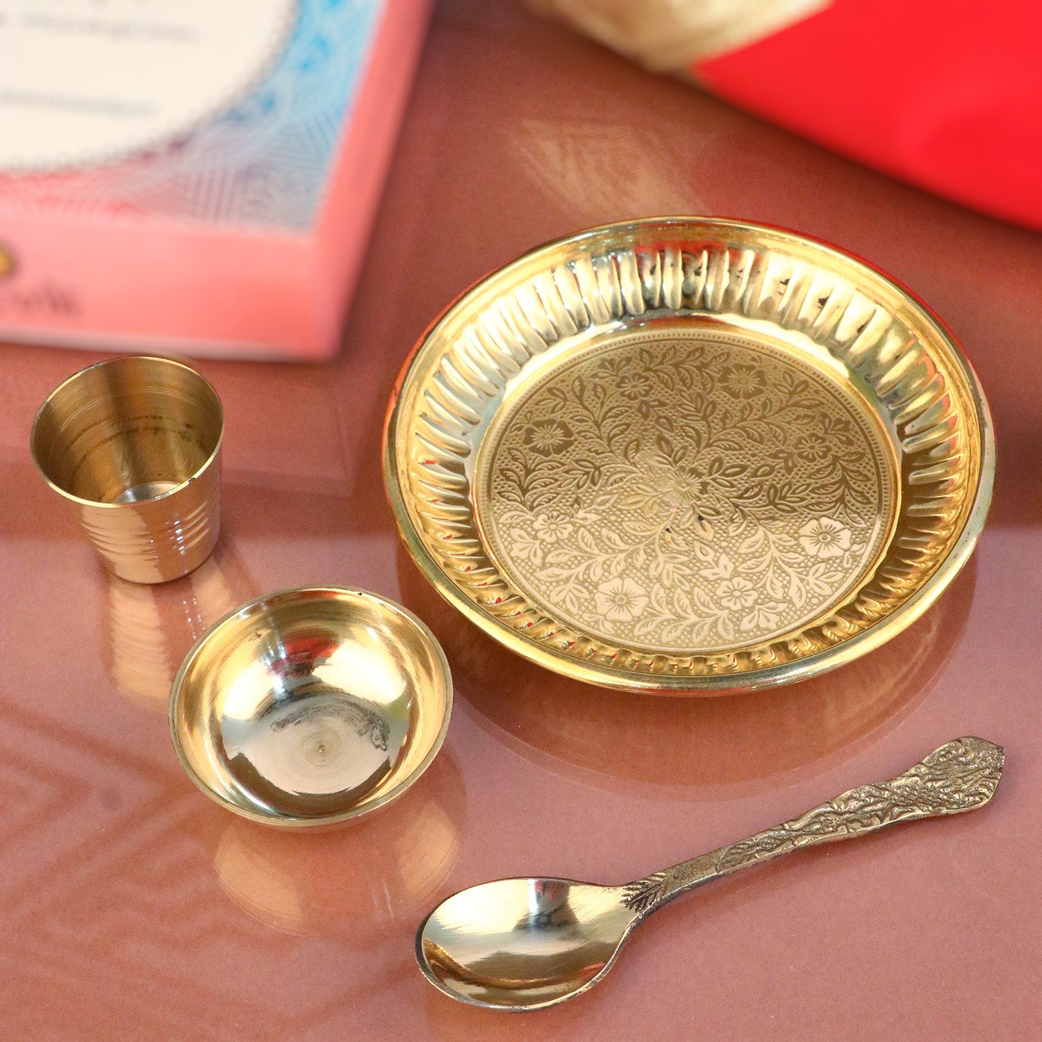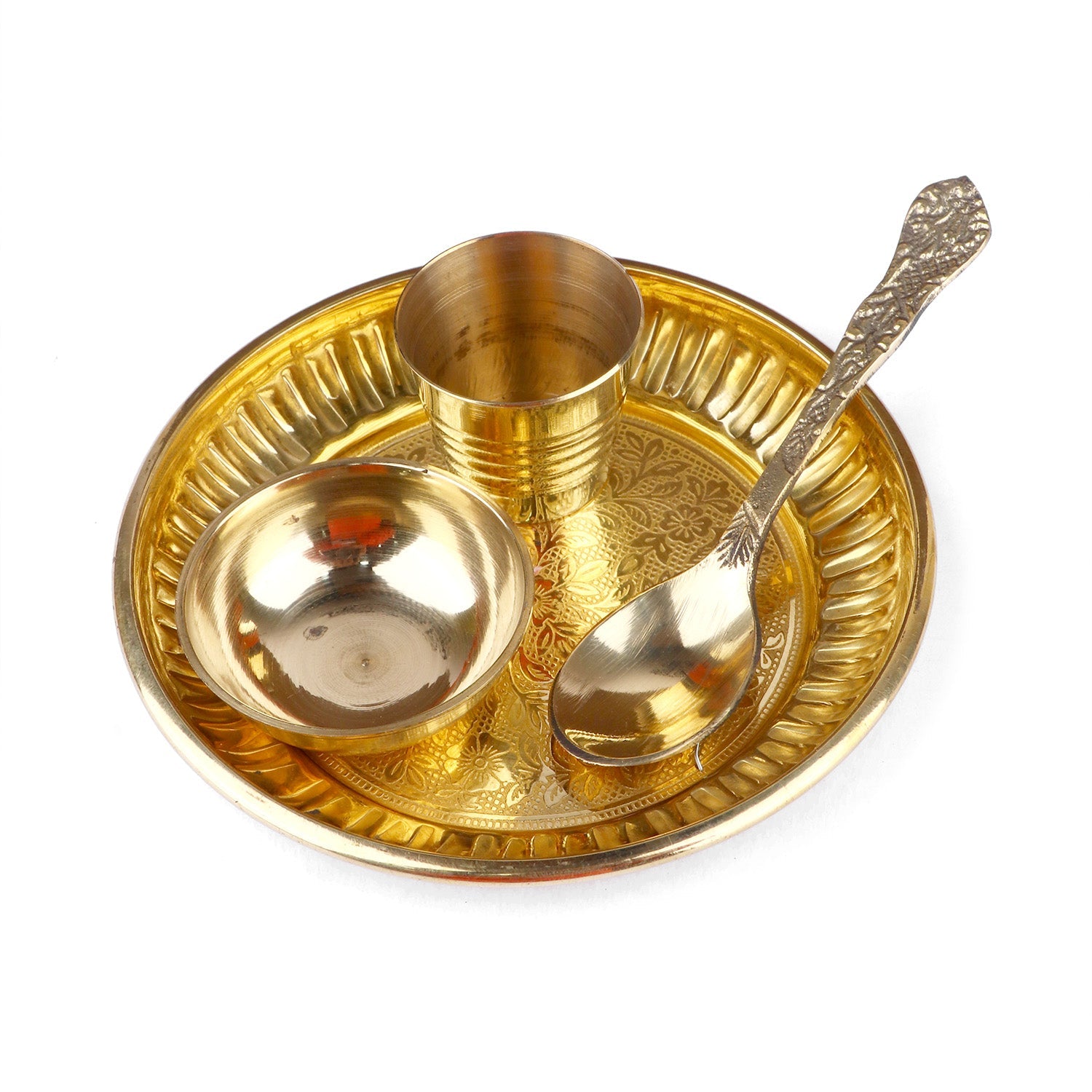 • Item Name: Brass Engraved Aarti 4 Pc Pooja Thali Set