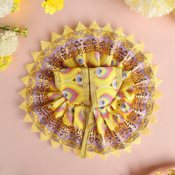 About Product: This lovely attire for your Laddu Gopal idol should be perfect for you if conventional patterns are becoming too mainstream for you. This beautiful attire provides a touch of sophistication to your pooja area during holiday events thanks to its modest traditional design features.