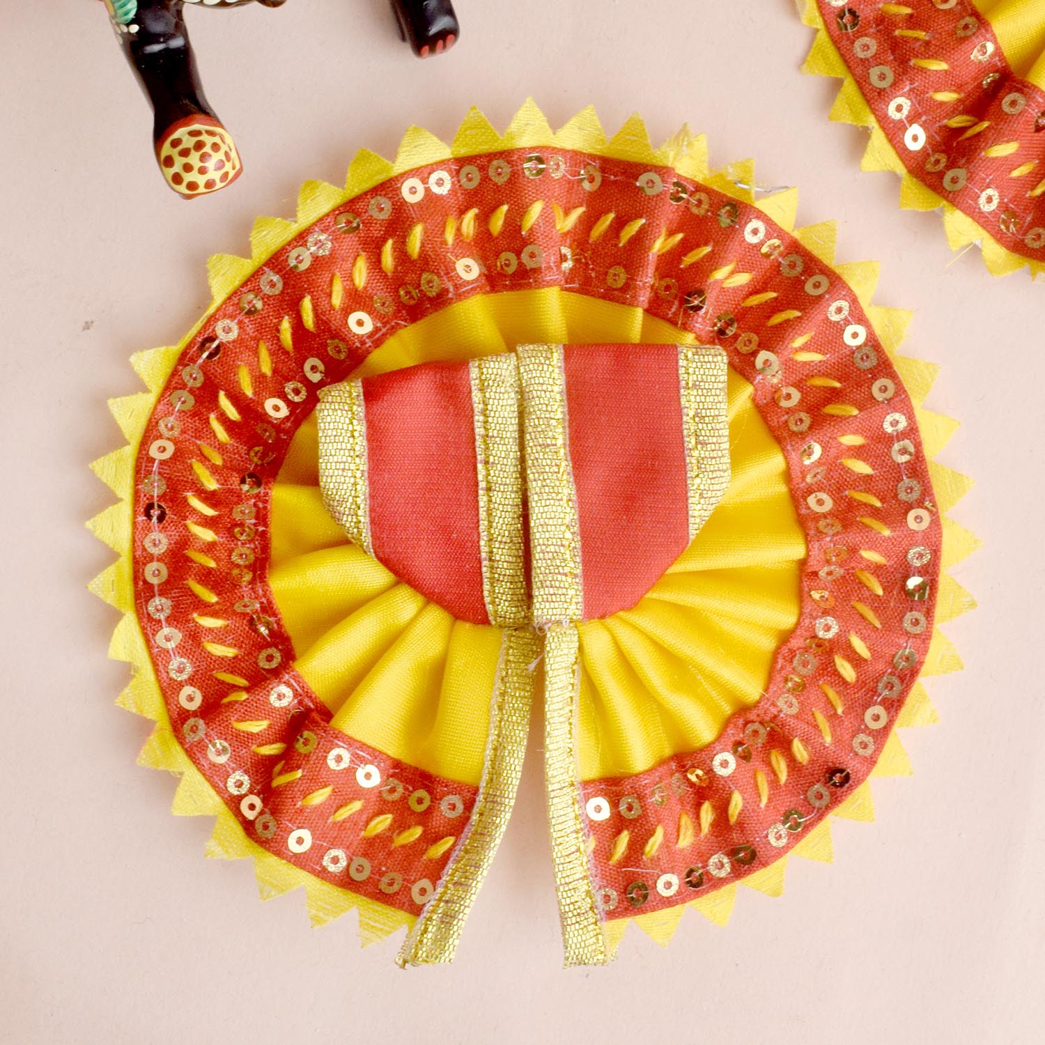 Give your Laddu Gopal a sparkling touch of elegance with this radiant yellow and red dress adorned with a shimmering sequin border. Beautifully crafted from quality fabric, it showcases bright hues and dazzling details that enhance the divine charm of your deity.