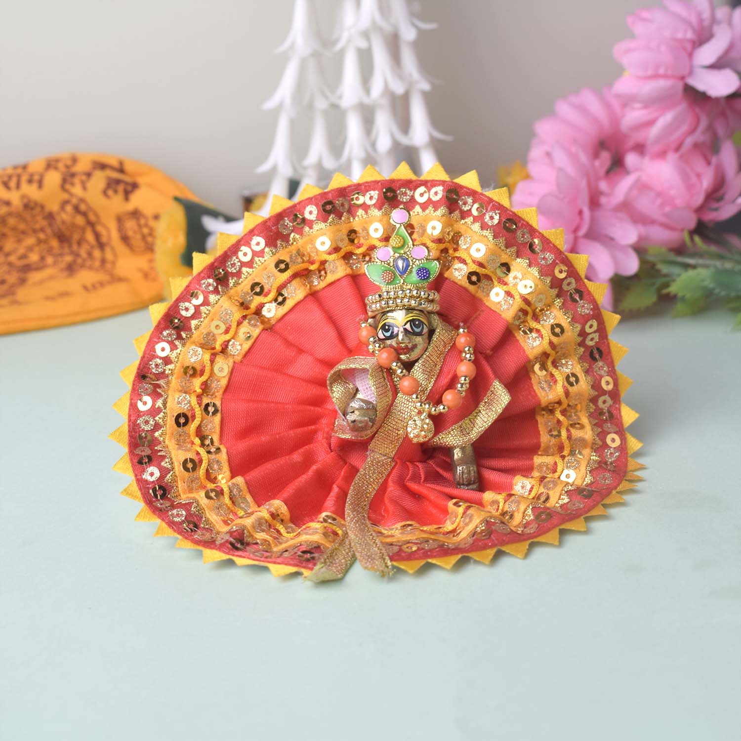 Buy Online | Vibrant Red-Yellow Laddu Gopal Dress | satvikworld.com – Satvikworld.com