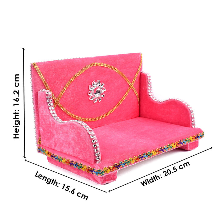As you place your Laddu Gopal on this sacred throne, watch as the velvet embraces the little lord, showering blessings and grace upon your home. Its charming allure and captivating design make it a true centerpiece of devotion, adding a touch of splendor to your worship space.