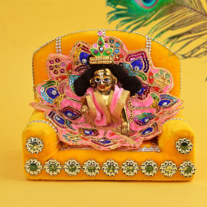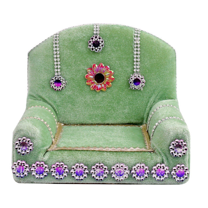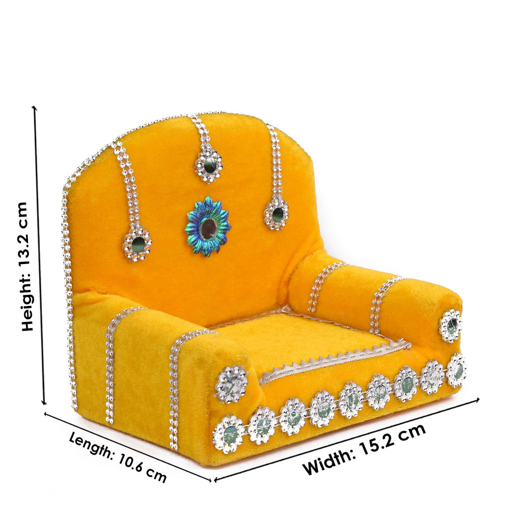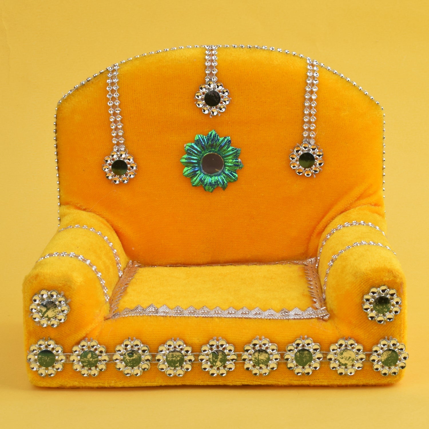 As you place your Laddu Gopal on this sacred throne, watch as the velvet embraces the little lord, showering blessings and grace upon your home. Its charming allure and captivating design make it a true centerpiece of devotion, adding a touch of splendor to your worship space.