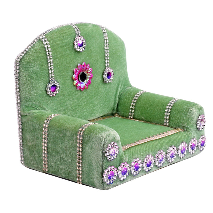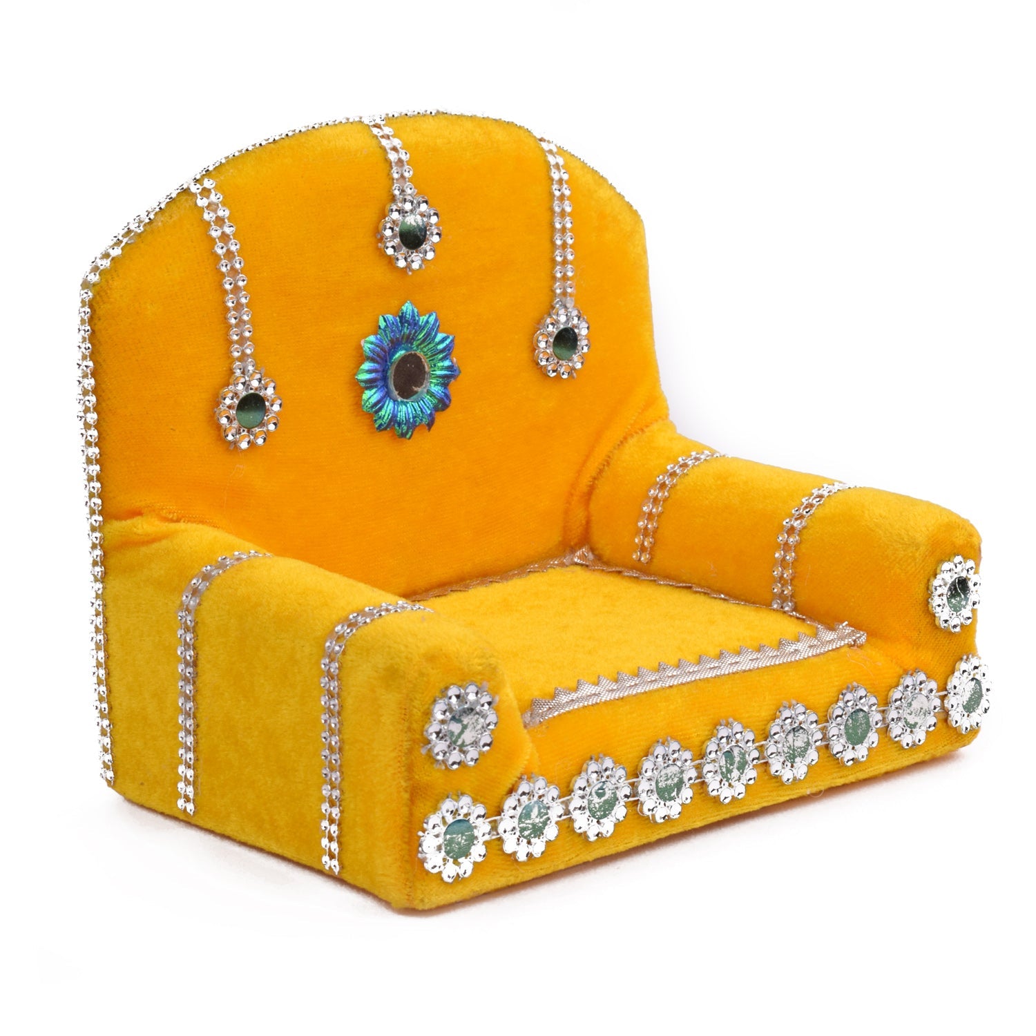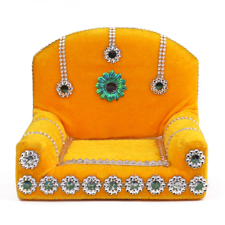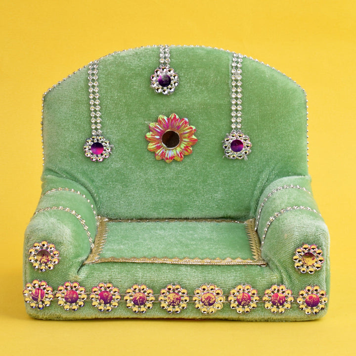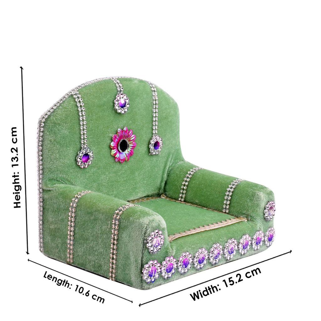 As you place your Laddu Gopal on this sacred throne, watch as the velvet embraces the little lord, showering blessings and grace upon your home. Its charming allure and captivating design make it a true centerpiece of devotion, adding a touch of splendor to your worship space.