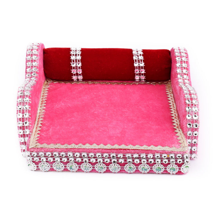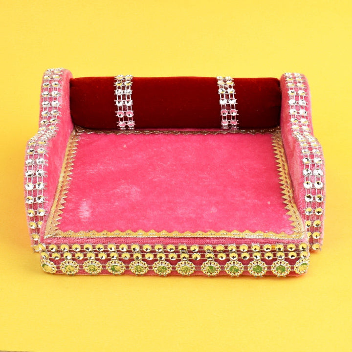 As you place your Laddu Gopal on this sacred throne, watch as the velvet embraces the little lord, showering blessings and grace upon your home. Its charming allure and captivating design make it a true centerpiece of devotion, adding a touch of splendor to your worship space.