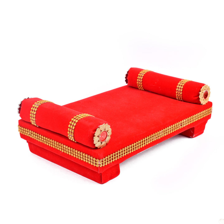 velvet laddu gopal singhasan | royal deity throne | krishna singhasan velvet | bal gopal seat for mandir | traditional gopal singhasan | red velvet throne for laddu gopal | pooja accessories for kanha ji | raj singhasan for krishna | satvikstore divine decor
