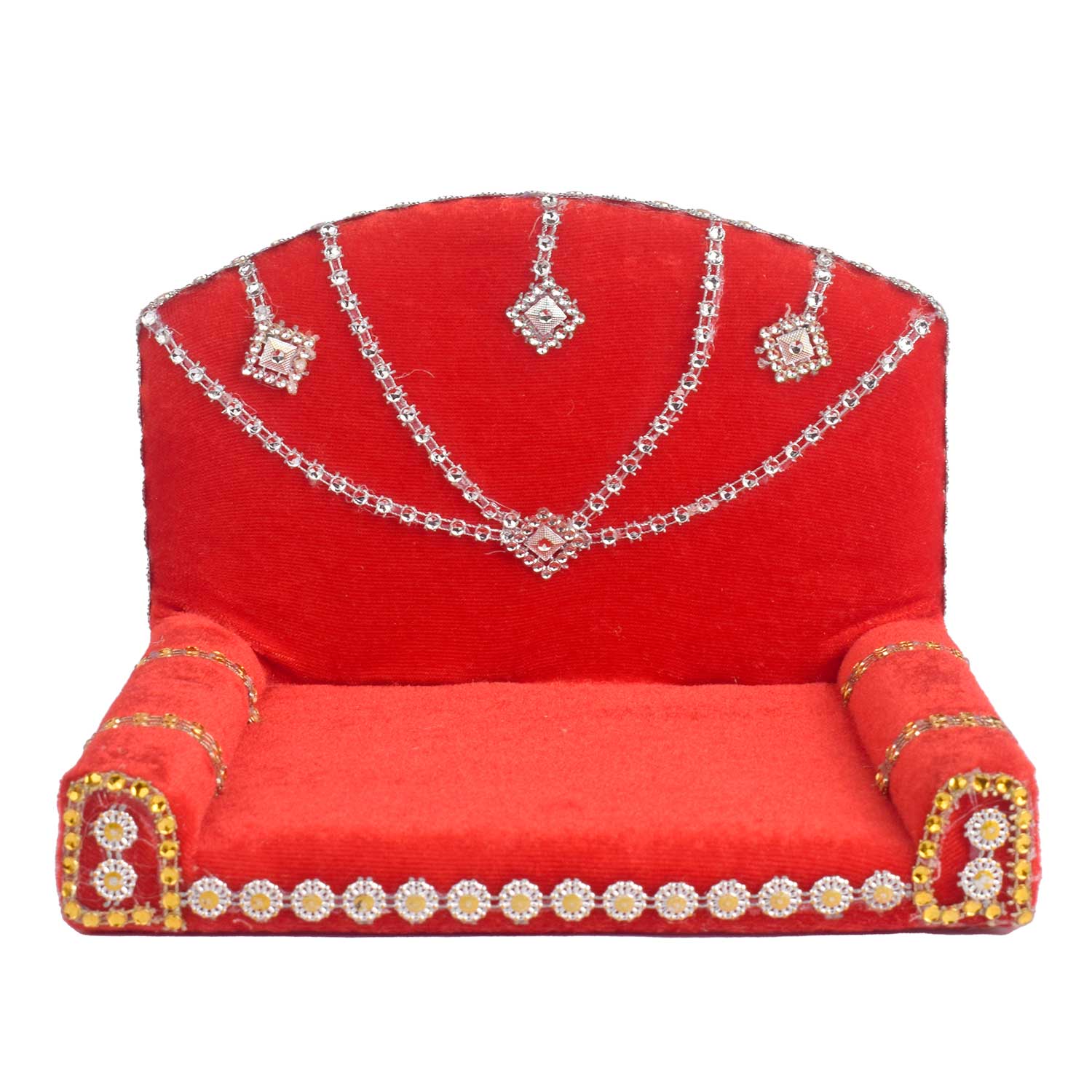 • Item Name: Royal Throne – Red Velvet Laddu Gopal Singhasan with Silver Detailing