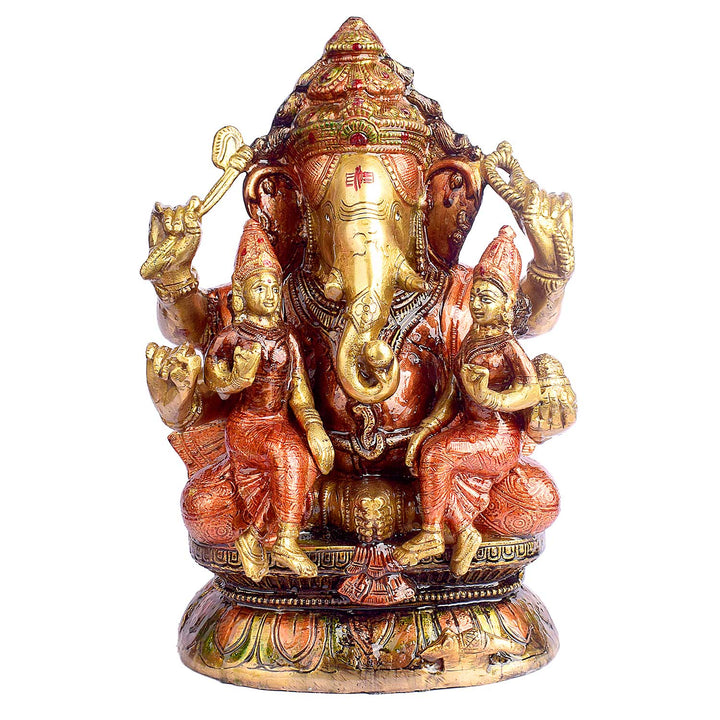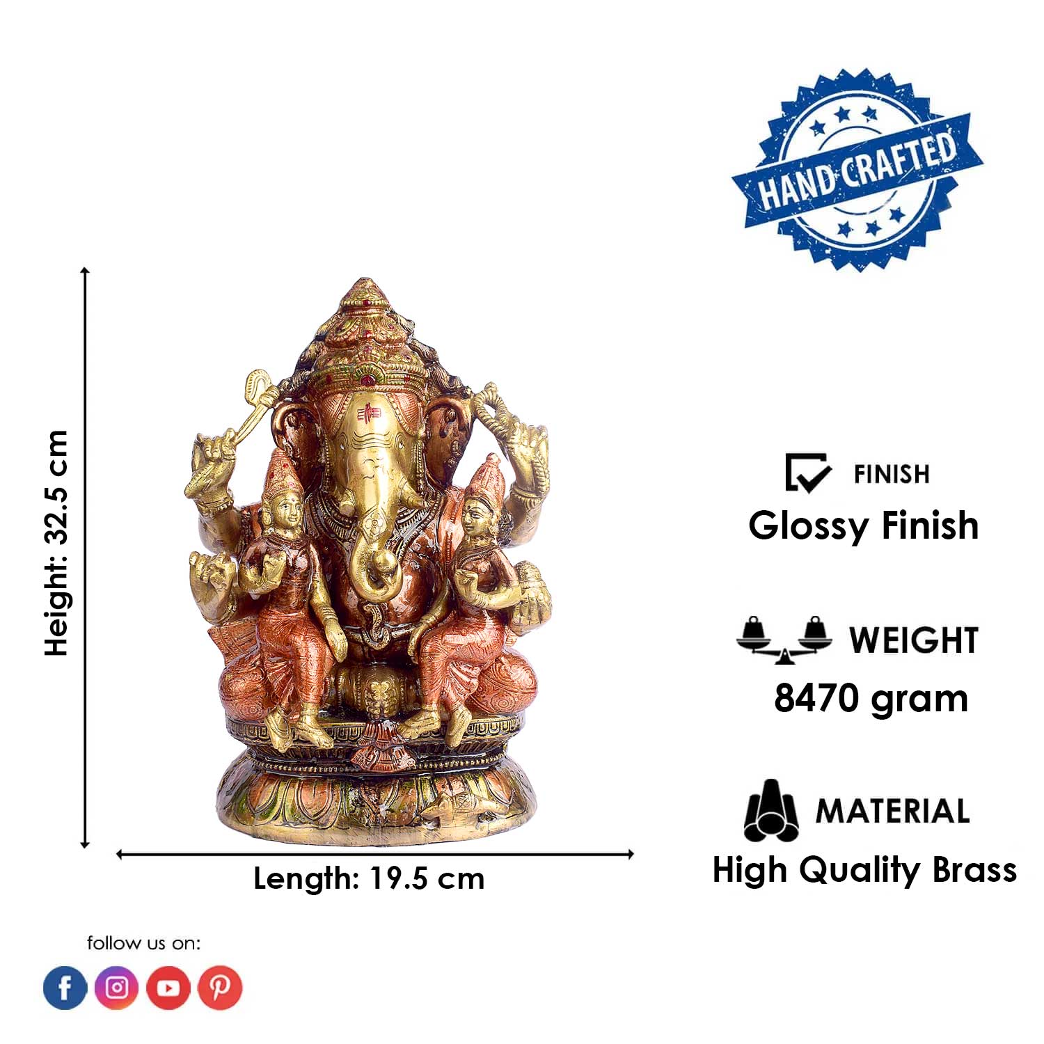• Item Name: 12.8 Inch Lord Ganesha Brass Statue with Riddhi Siddhi