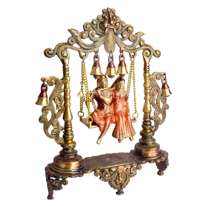 Buy 18.1 Inch Pure Brass Large Radha Krishna Swing Jhoola | Satvikworld.com