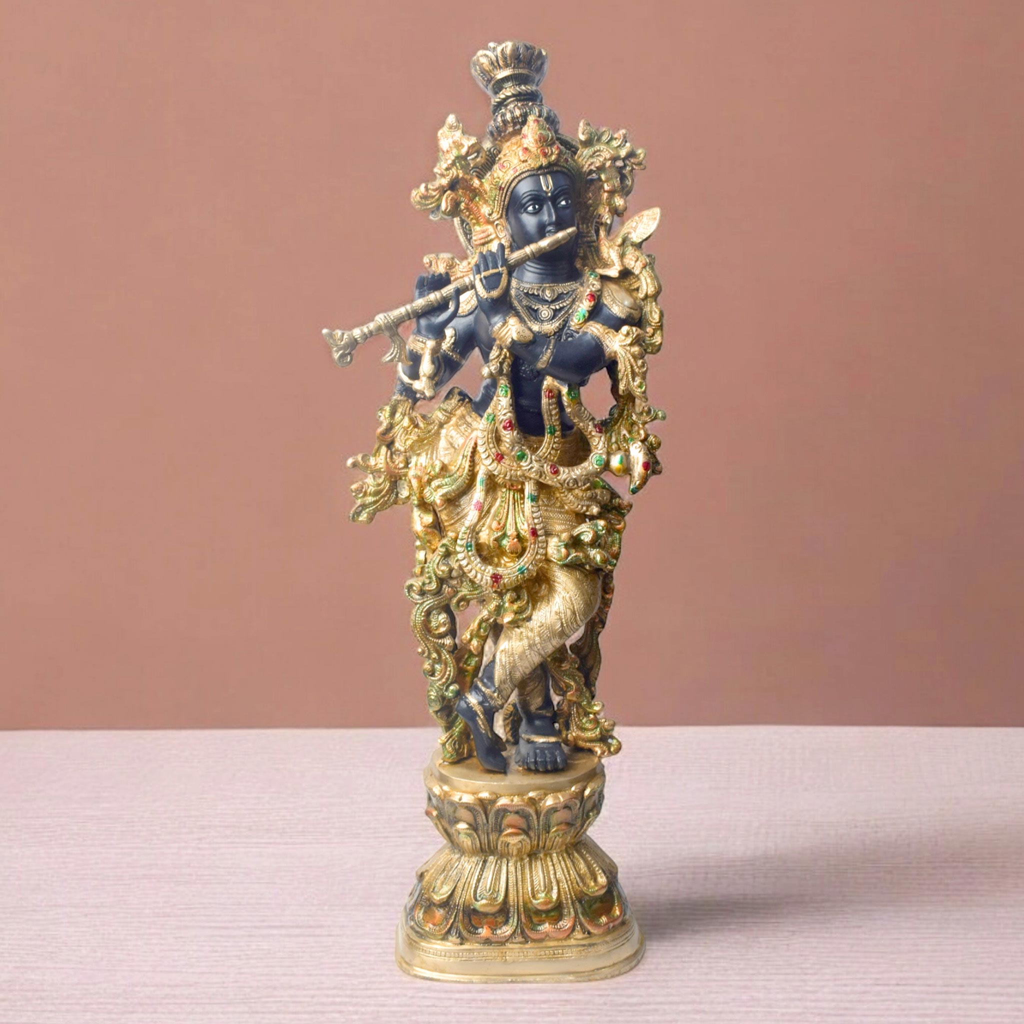• Item Name: 28 Inch Brass Krishna Sculpture with Artistic Detailing
