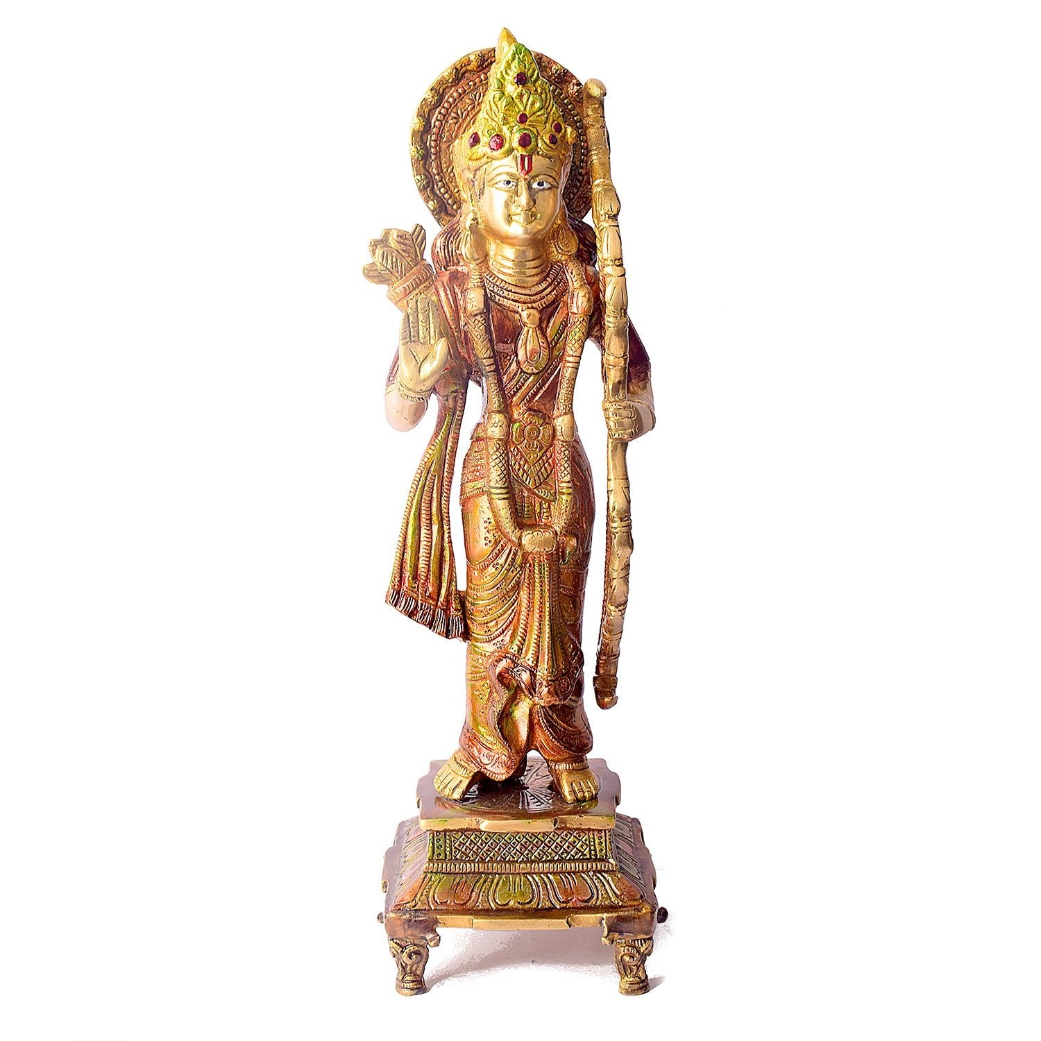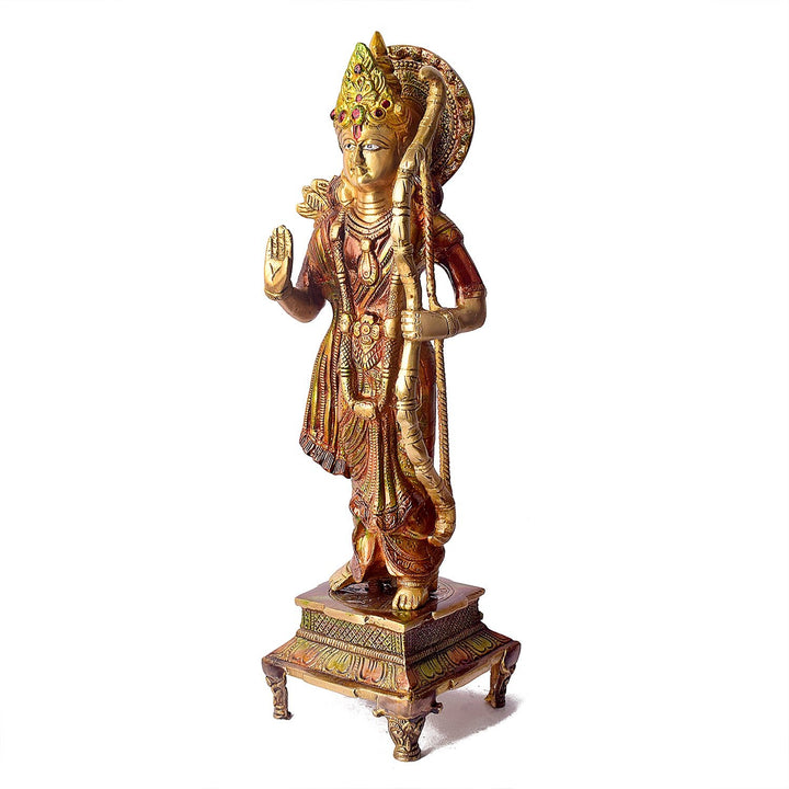 About Product: This Opulent Brass Colorful Ram Statue with Bow is a stunning representation of strength, grace, and devotion. Expertly crafted from high-quality brass and adorned with vibrant colors, the statue beautifully depicts Lord Ram in an active pose with his bow, symbolizing courage and righteousness.