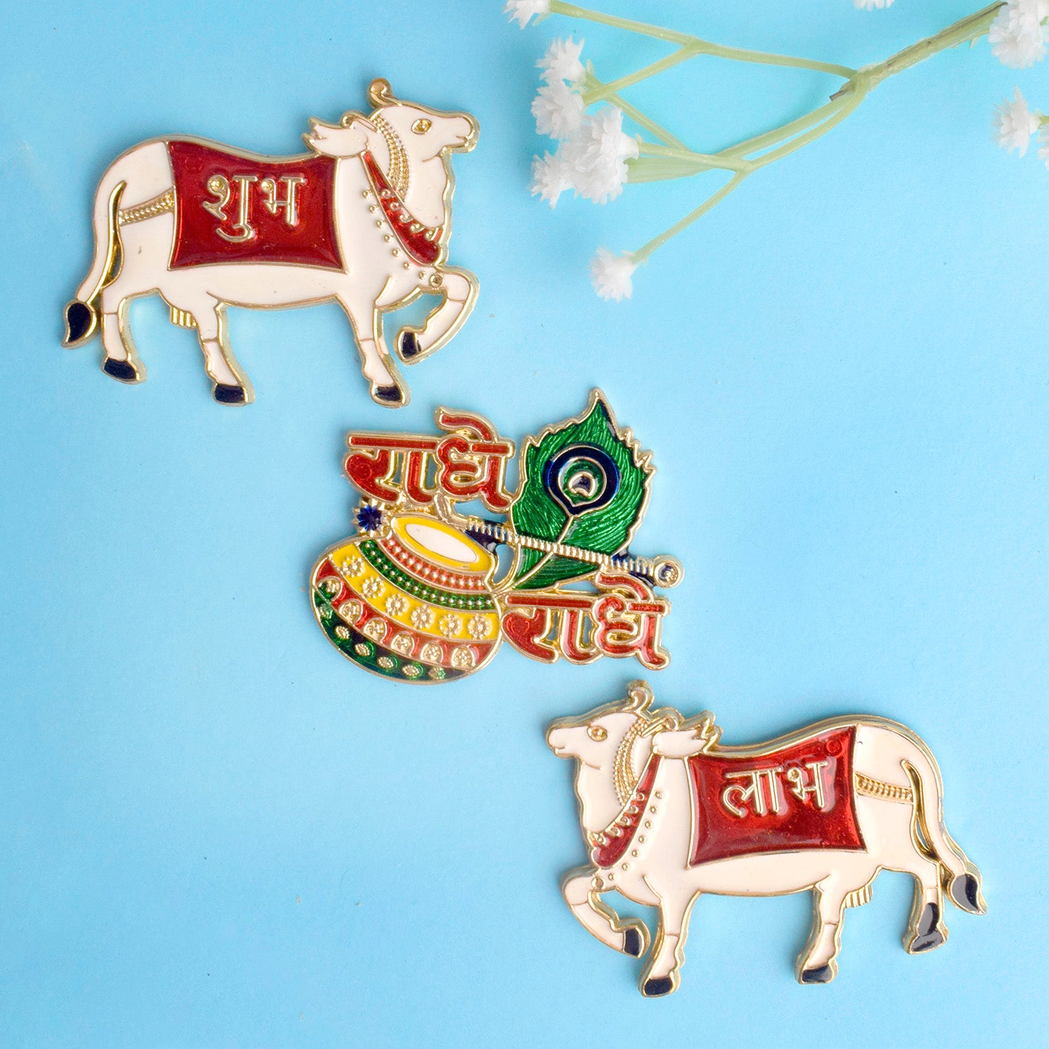 Shubh Labh Leaf With Swastik Wooden StickerPackage Contains: 1 Pair of Cow Stickers and 1 Handhi Sticker