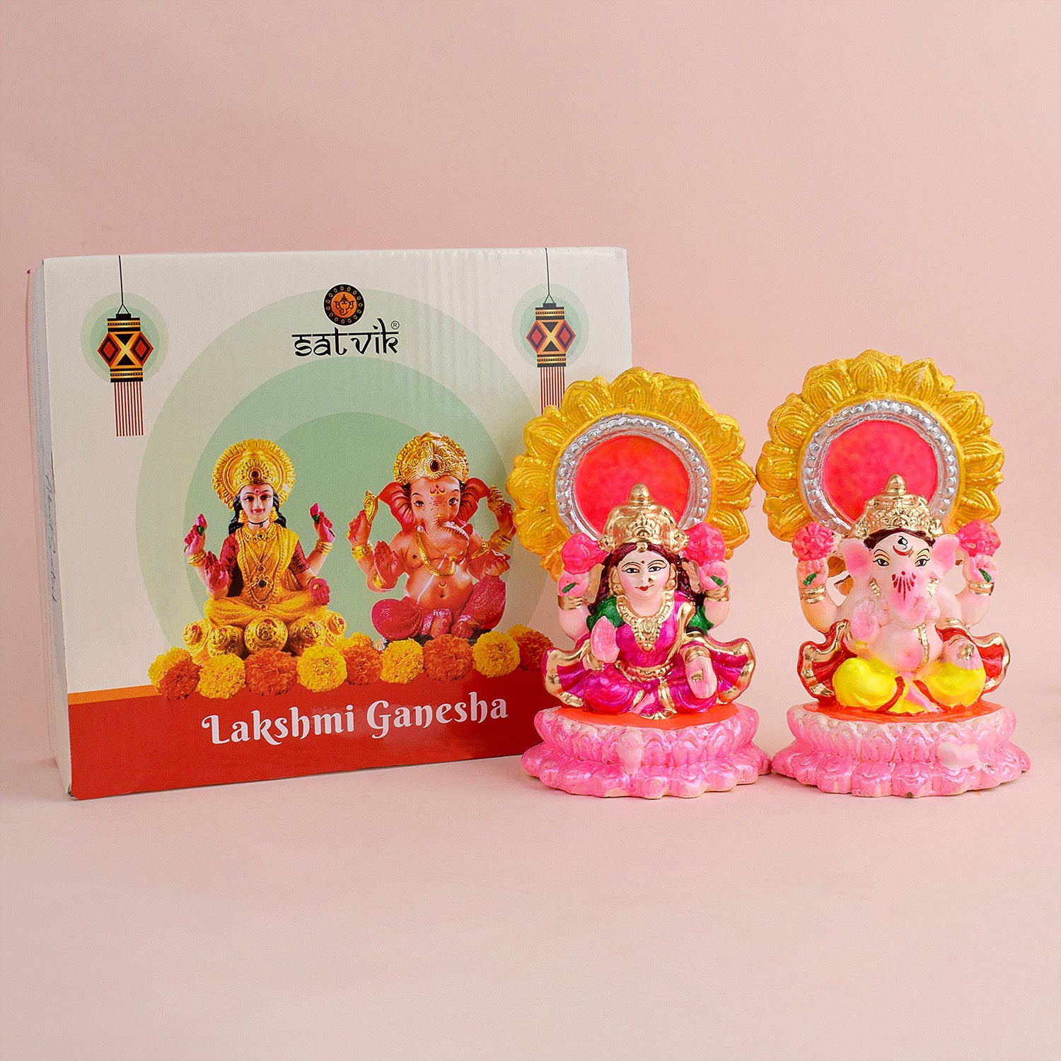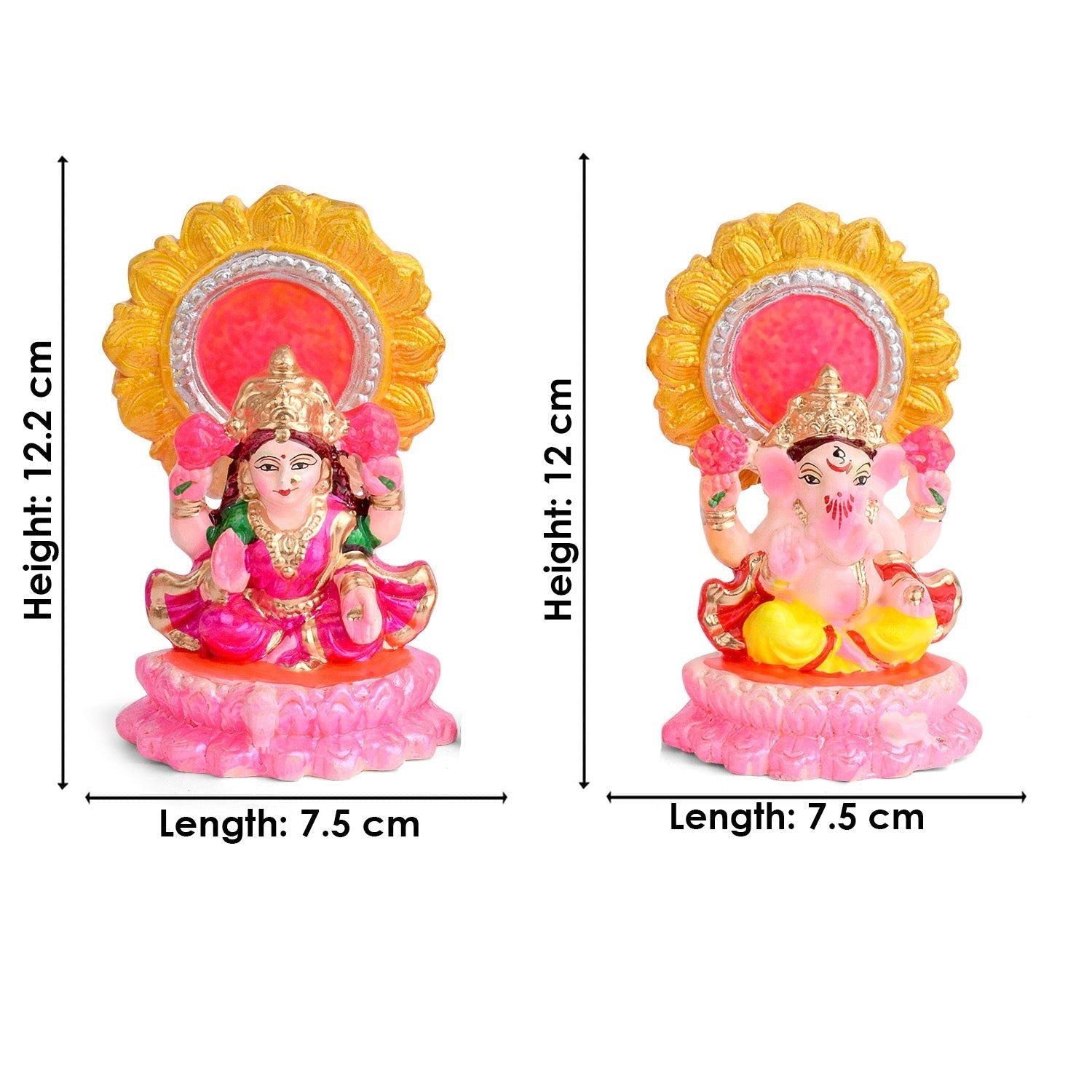 • Product Details: Material: Clay Dimensions: Ganesha: Height: 12cm, Length: 7.5cm, Width: 5.6cm, Laxmi: Height: 12.2cm, Length: 7.5cm, Width: 5.6cm, Total weight: 380gram, Finish Type: Glossy.