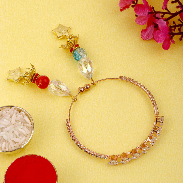 For an elegant touch, we offer bracelet-style rakhis crafted from premium metals like silver and gold. These exquisite pieces exude sophistication and can be cherished as timeless heirlooms.