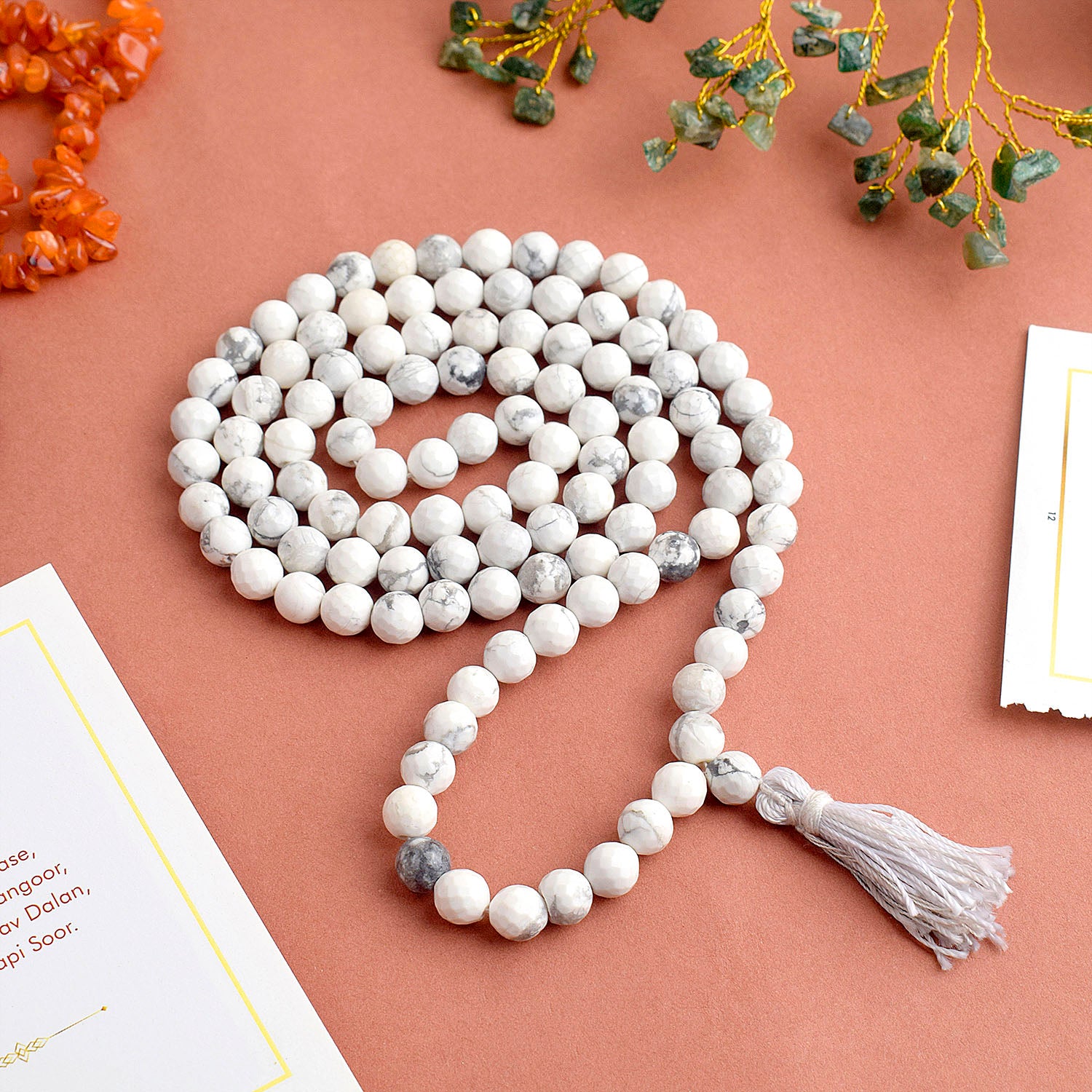 • Item Name: Howlite Crystal Necklace | 6MM Beads for Chakra Healing & Calm