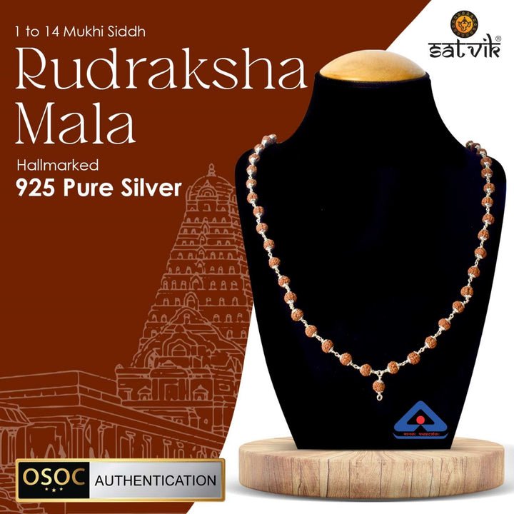 Hallmarked 925 Pure Silver Panchmukhi Rudraksha Mala