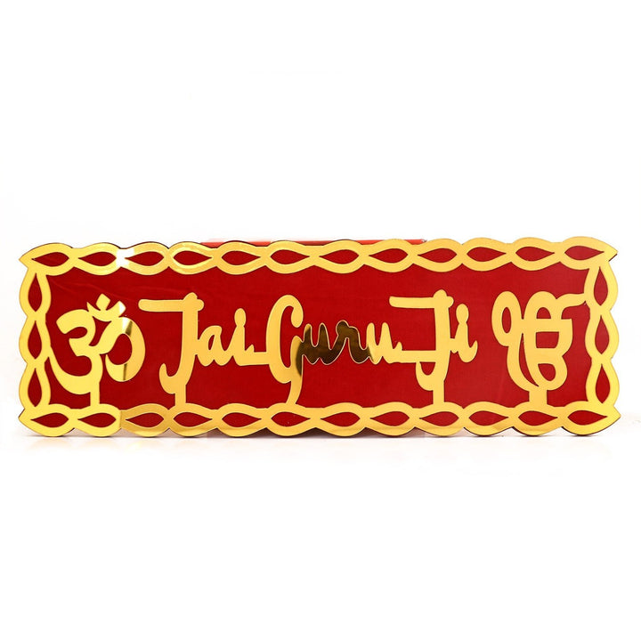 • About Product: Om Jai Guruji Written Red Velvet with Golden Work Door Plate
