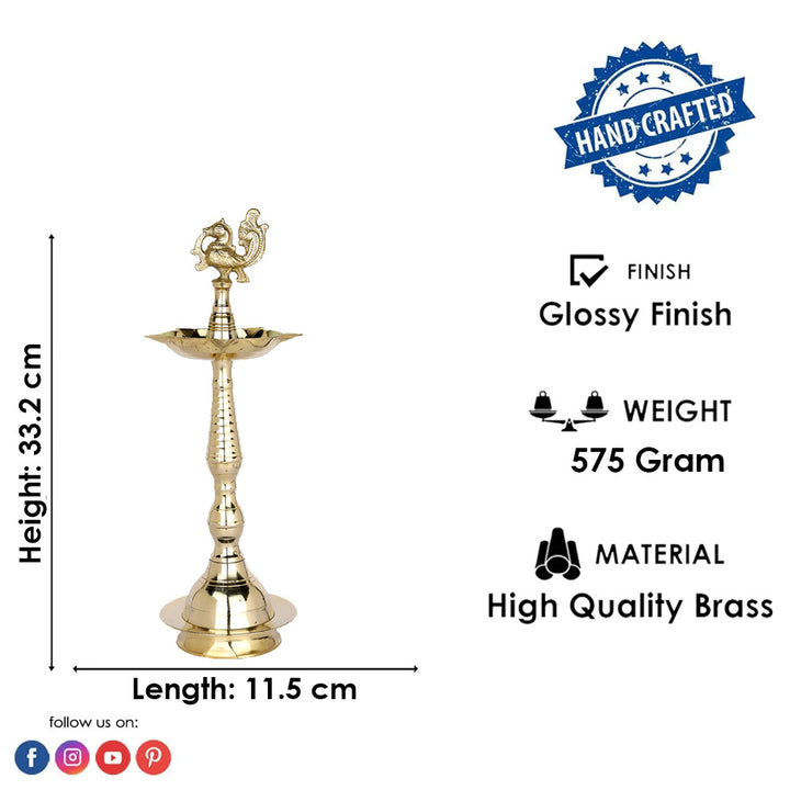 • Item Name: 13 Inch Brass Peacock Kerala Diya