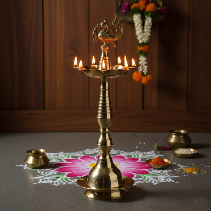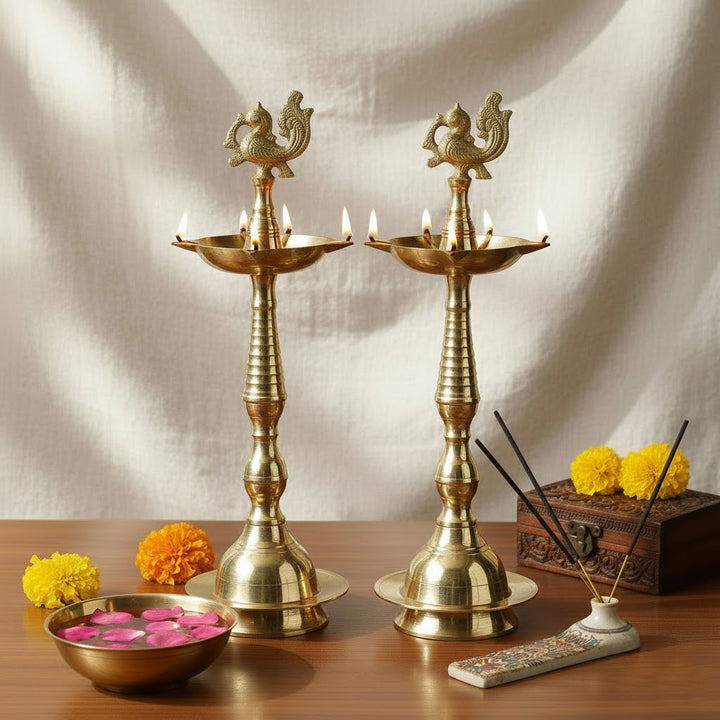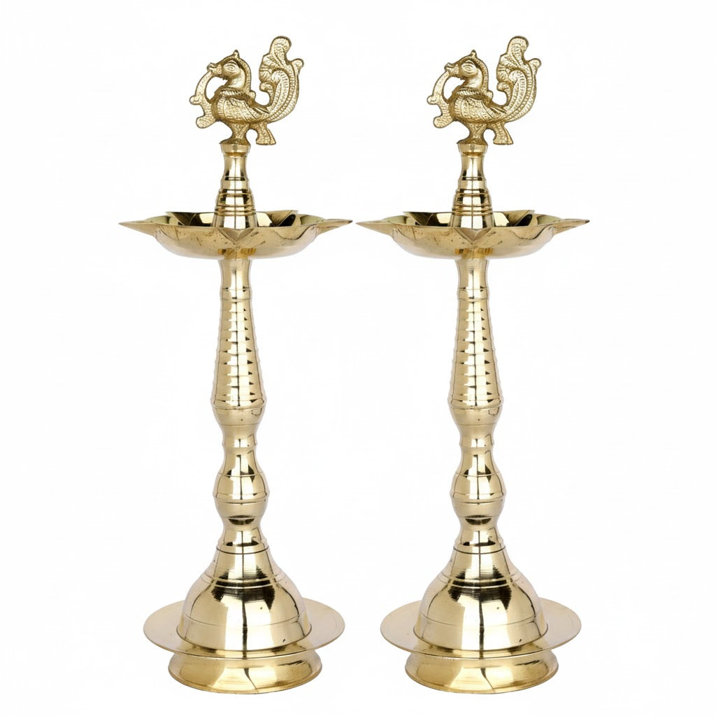 Buy 13 Inch Pure Brass Peacock Kerala Diya | Satvikworld.com