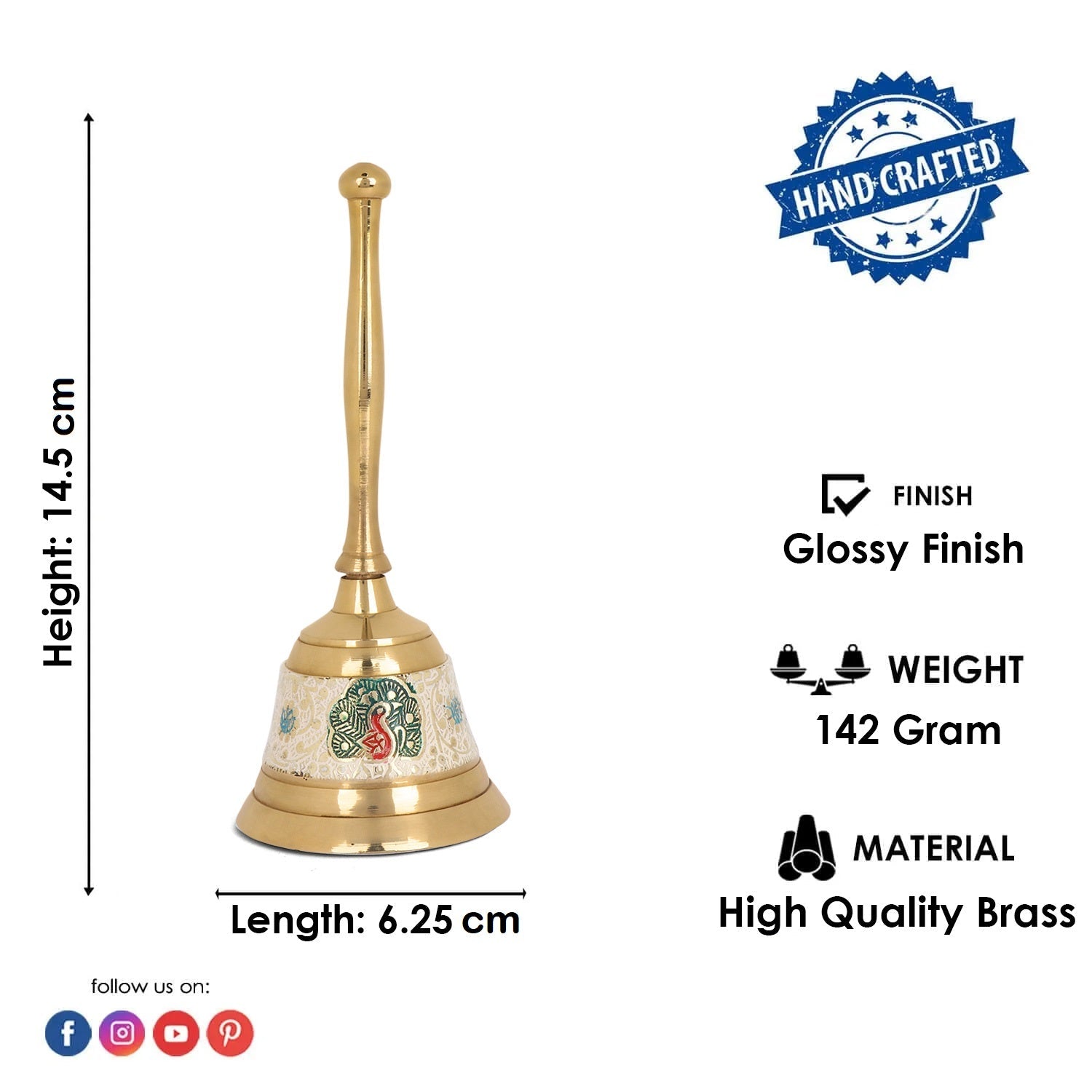 • Package Contains: 1 Pc of Enthralling Brass Puja Bell/Ghanti