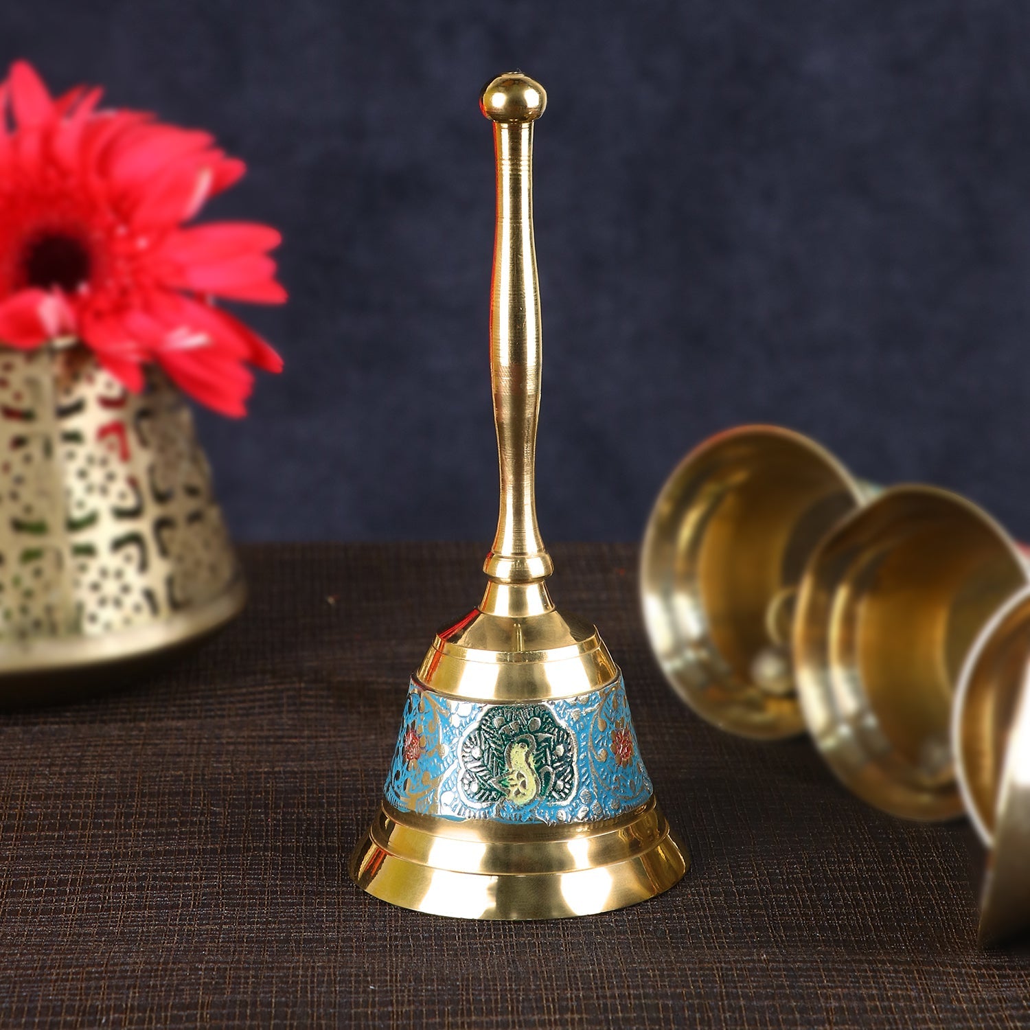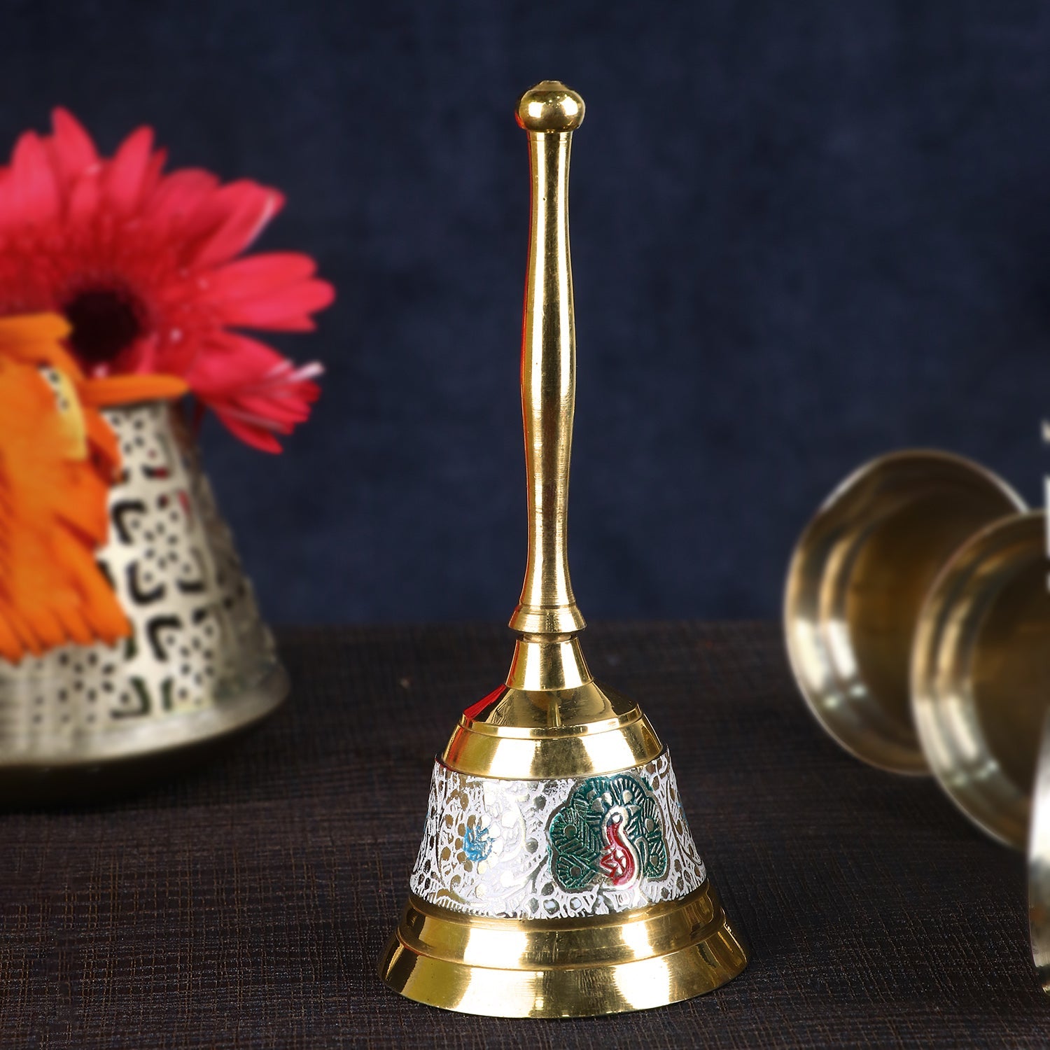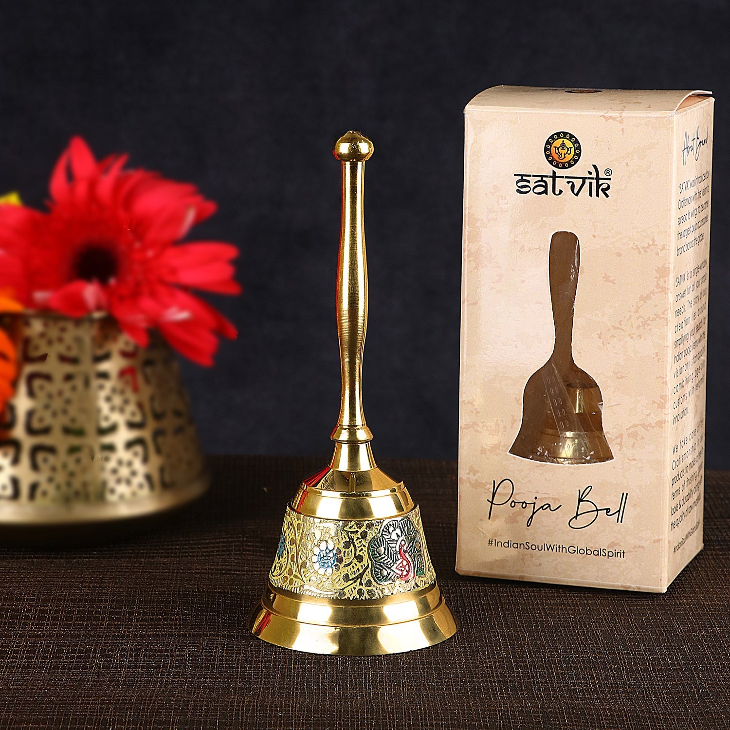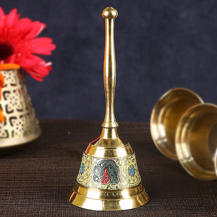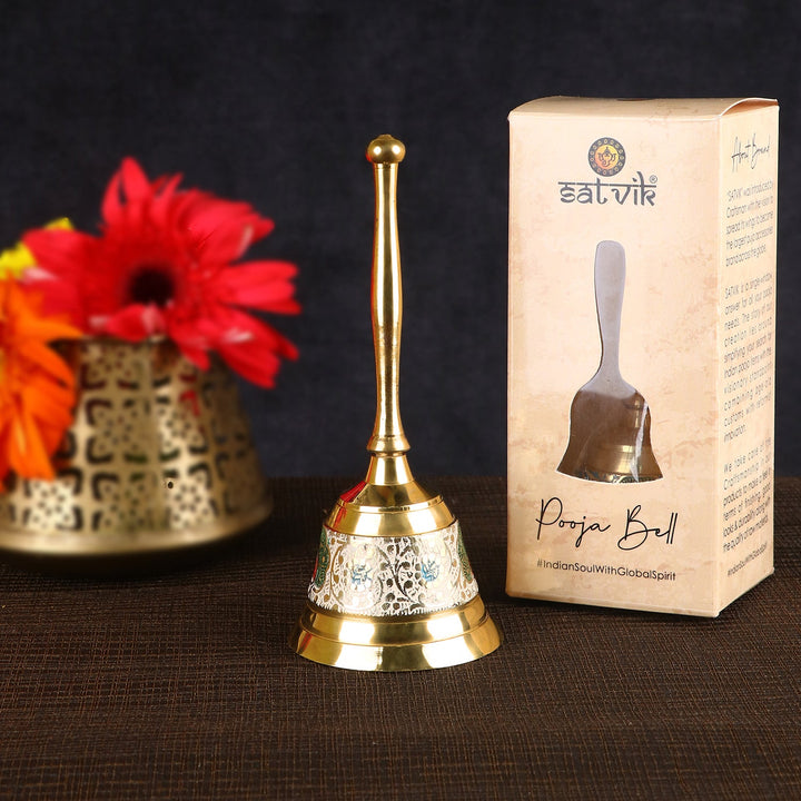 Shop Online Enthralling Brass Hand Held Puja Bell | Satvikworld.com