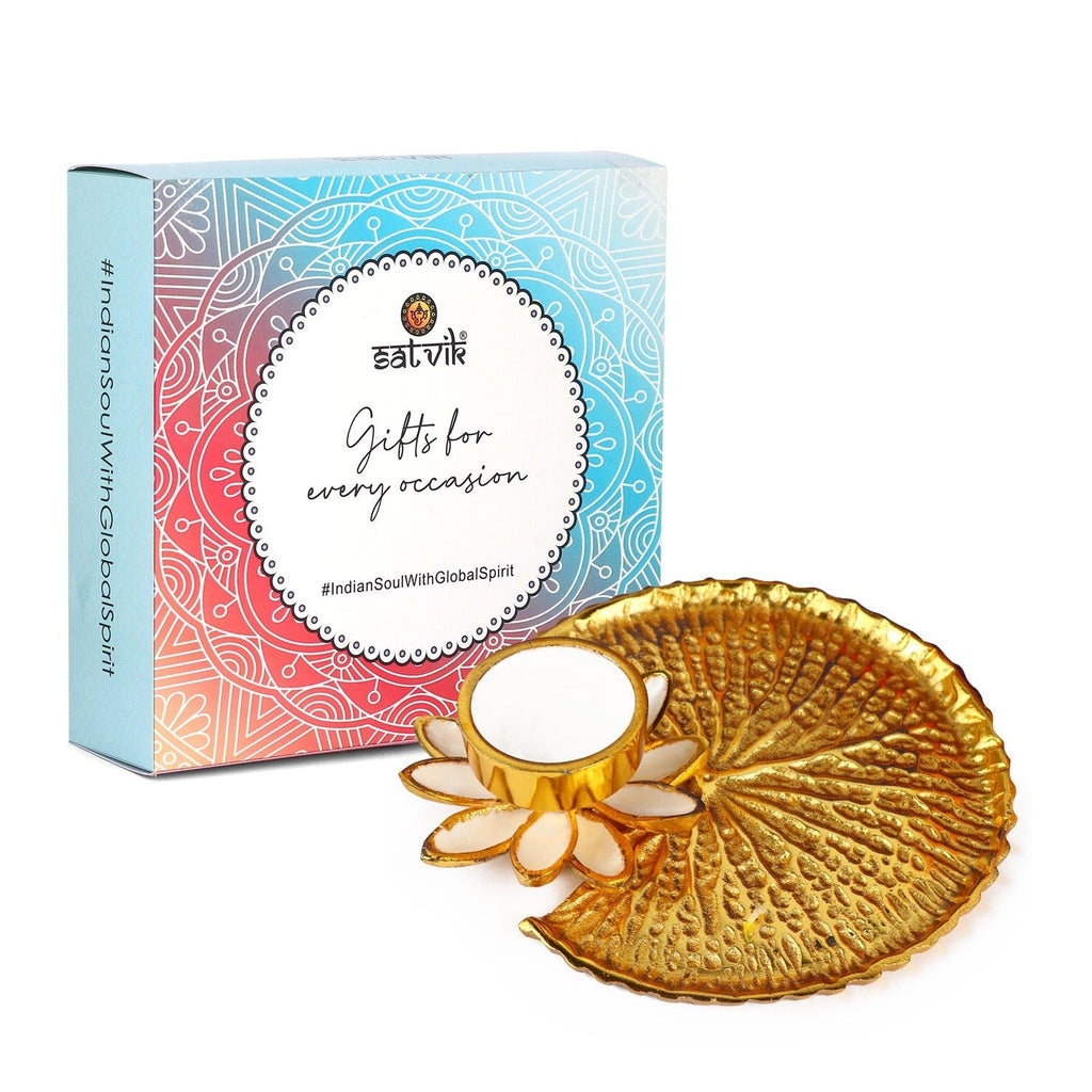 - Traditional and timeless, with diya, bell, incense holder, and roli chawal katori.