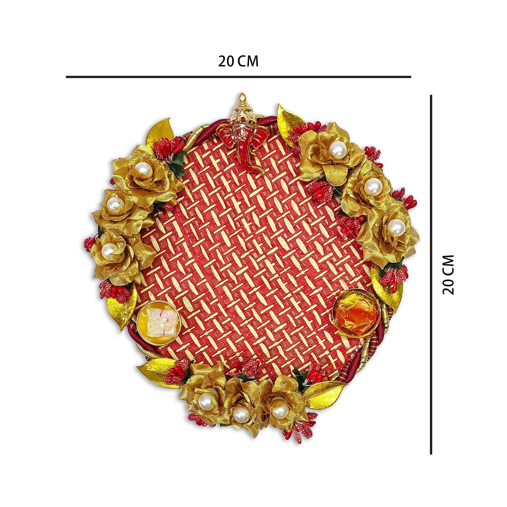handmade pooja thali | elegant aarti thali | traditional puja plate | decorative pooja thali | festive pooja thali | handcrafted aarti plate | pooja thali for temple | Indian puja accessories | Karwa Chauth thali | Diwali pooja thali | artistic puja thali | pooja thali set online | puja thali with bowls | wedding pooja thali |
