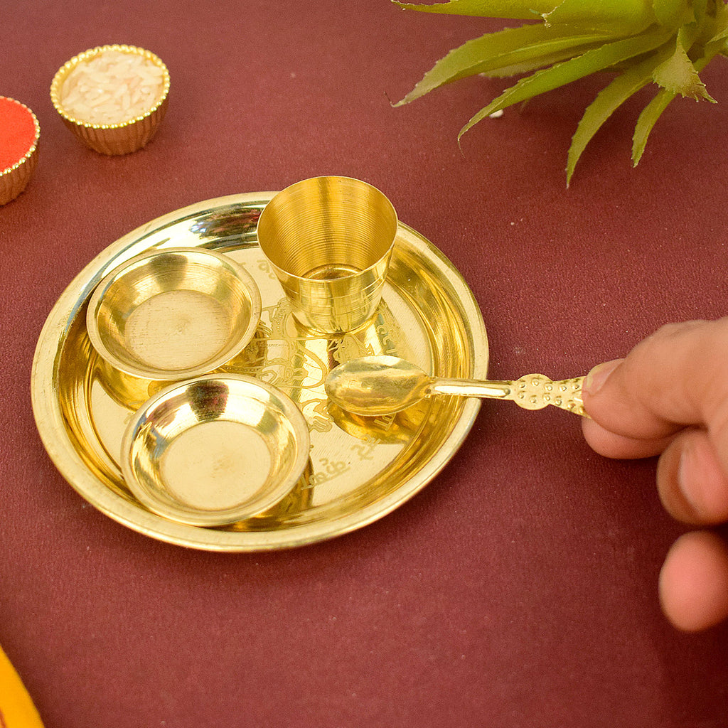 • Material: The Brass Puja Thali is made from High-Quality Brass Material