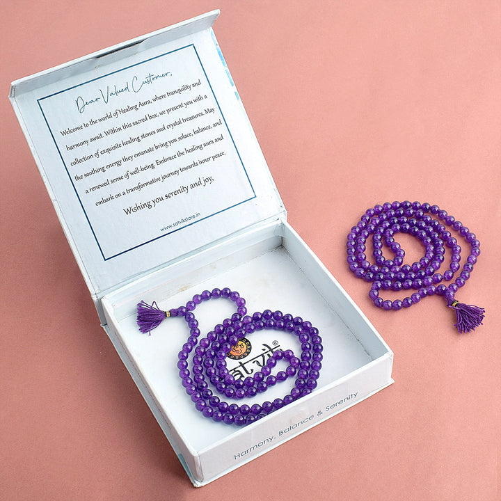 Premium Hakik Jap Mala | Purple Hakik Mala | Amethyst Jap Mala | Spiritual Healing Mala | Meditation Beads for Chanting | Amethyst Stone Benefits |