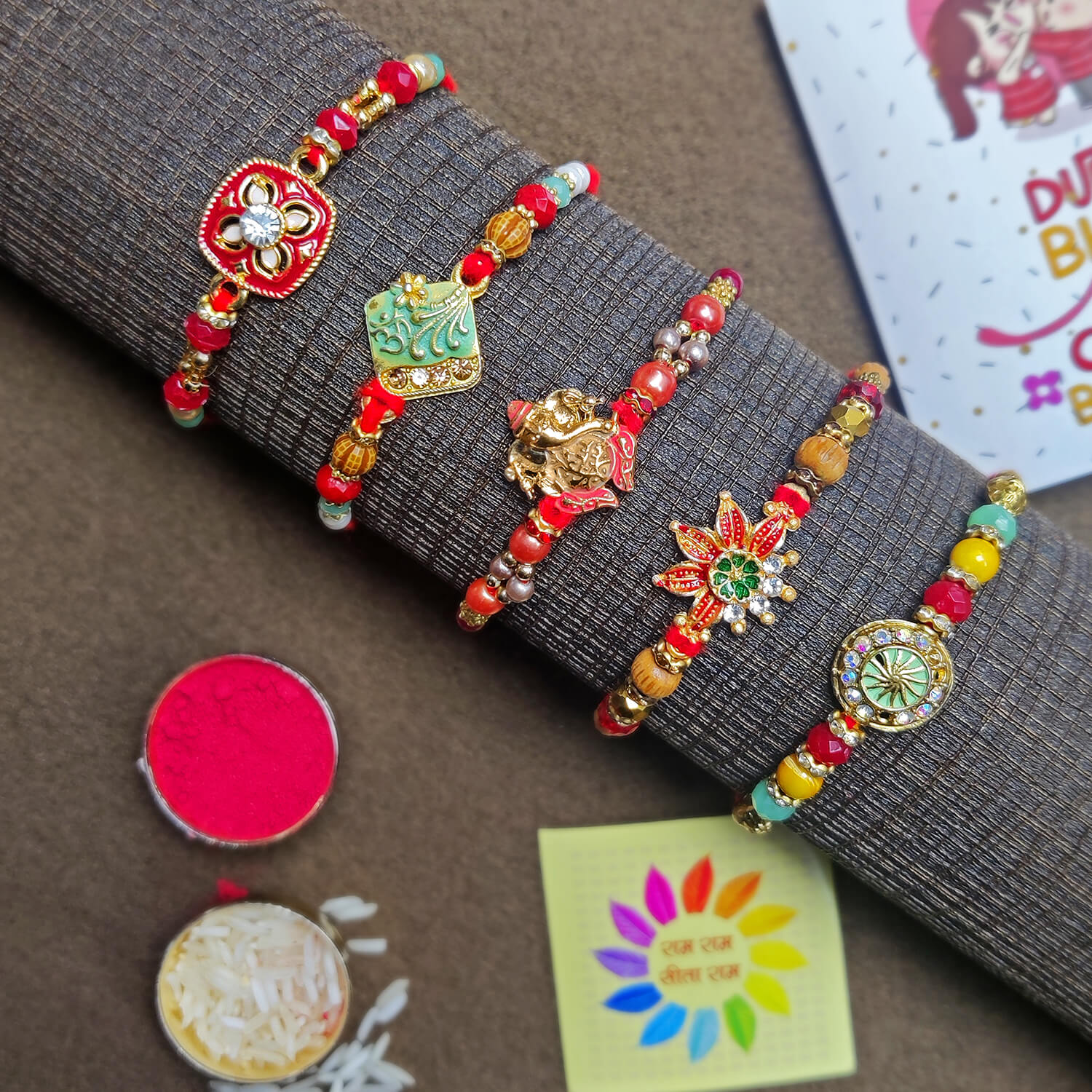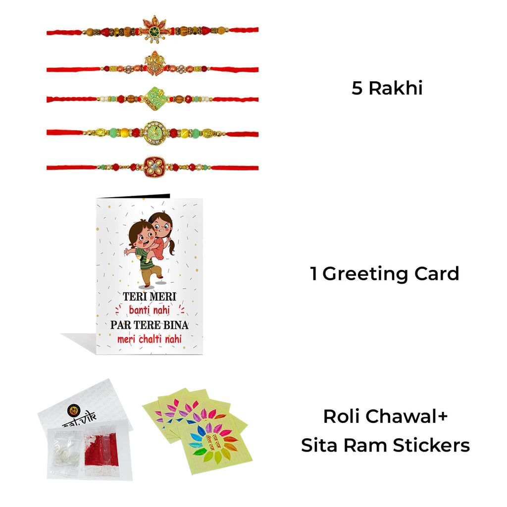 • Package: Assorted Rakhi Set of 5