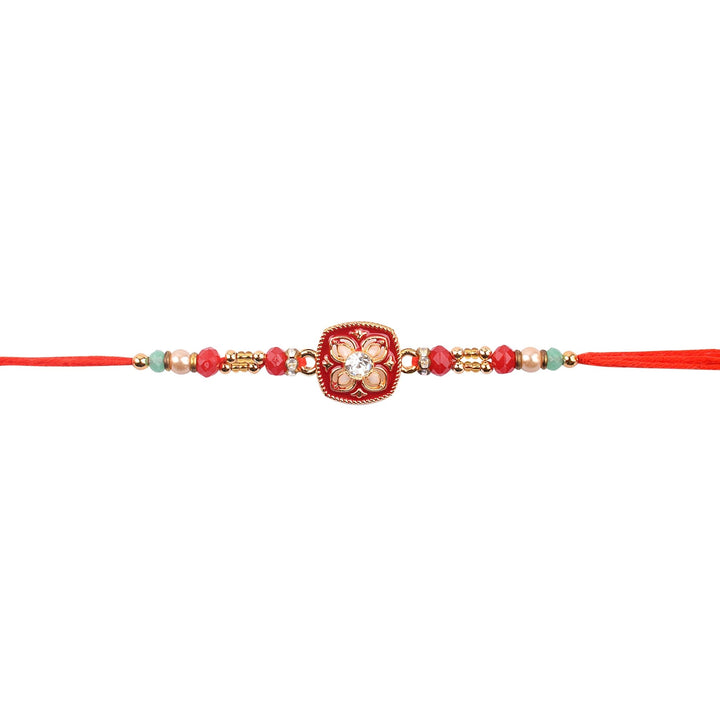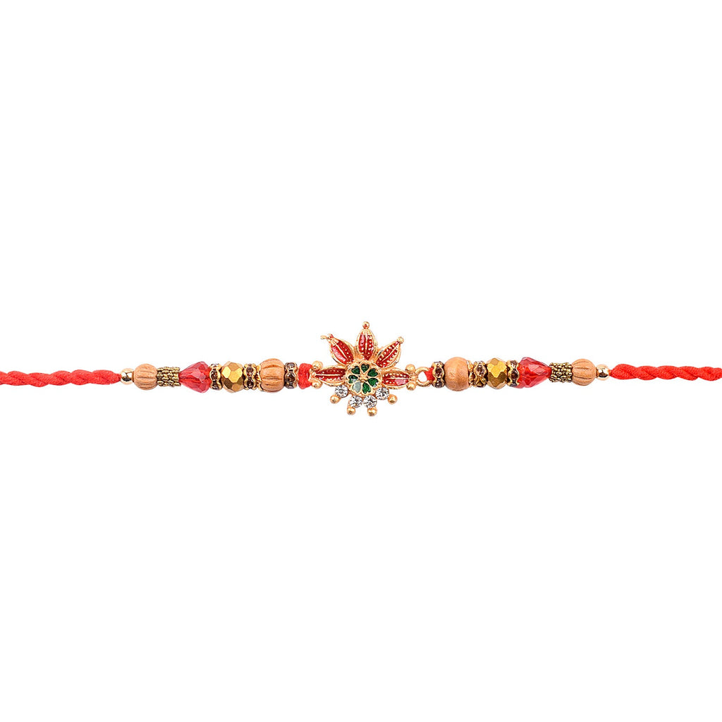• Item Name: Beauteous Floral Meena Work Designer Rakhi