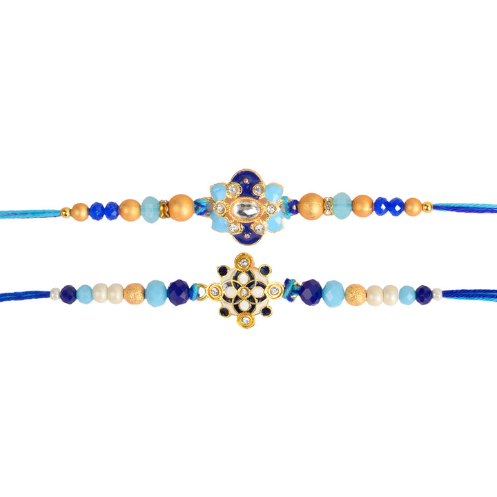 About Product: Strengthen the sacred bond of sibling love with this Set of Two Rakhis, beautifully designed for your beloved brothers. Each rakhi features traditional threadwork and intricate detailing, making them a perfect blend of spirituality and festivity.