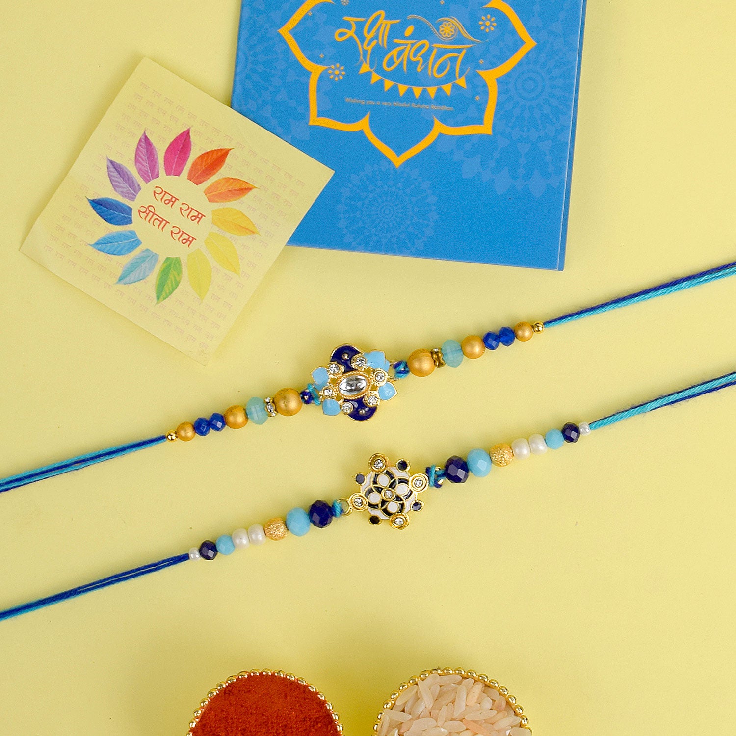 • Item Name: Traditional Rakhi Set of 2 with Roli Chawal & Ram Sita Stickers