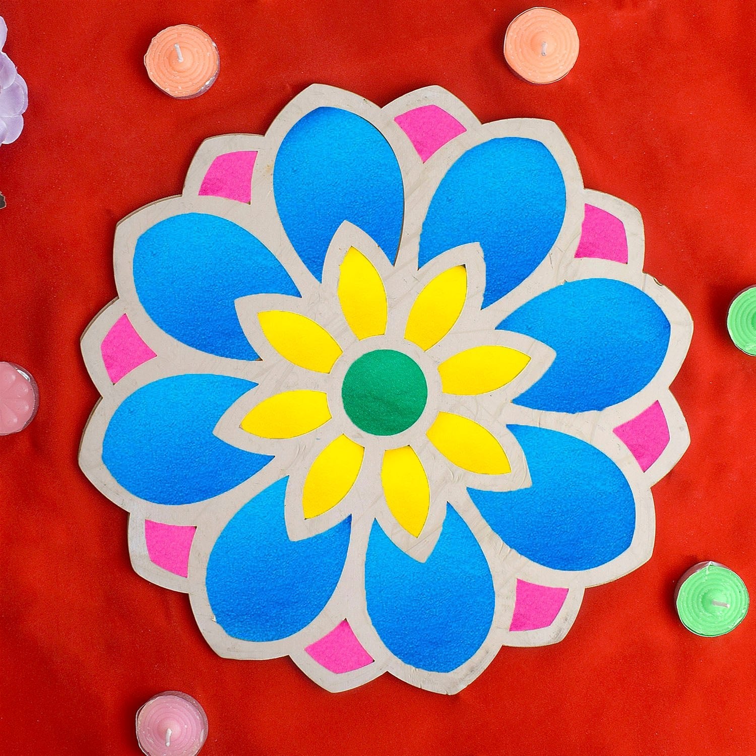 Crafted with precision, the reusable MDF (Medium-Density Fiberboard) Rangoli Mat serves as a sturdy canvas for your creative expression. Its wooden base provides stability, making it easy to position and design your Rangoli with precision. This dynamic duo ensures that even beginners can craft intricate and visually appealing Rangoli patterns.