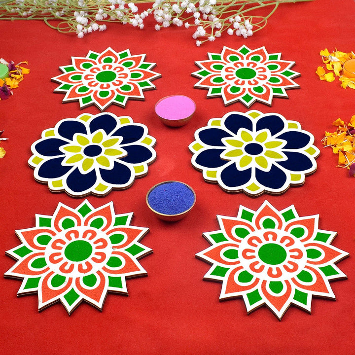 6-Inch Reusable Rangoli Stencils Set for Festive Decor Set of 6
