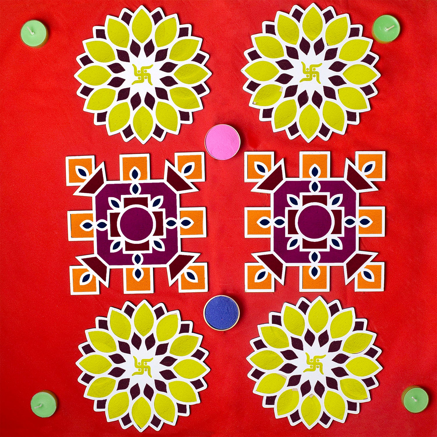 • Easy to Use: Even if you're new to rangoli-making, our kit comes with step-by-step instructions that simplify the process, so you can achieve professional-looking results. Pooja Essential: Create a harmonious atmosphere for your Diwali puja with our rangoli set, adding an artistic touch to your sacred space.