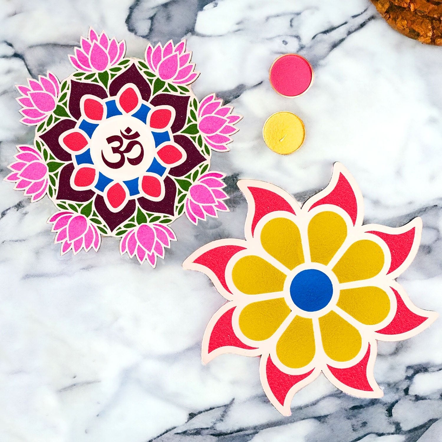 About the Product: Discover the artistry of rangoli like never before with our exquisite rangoli templates. Crafted with precision and designed to inspire, our rangoli templates are the perfect canvas for your creative expression. Why Choose Our Rangoli Templates? Elevate Your Decor: Our templates add an elegant touch to your home, event, or celebration, creating a captivating visual centerpiece. Stress-Free Artistry: Whether you're a seasoned rangoli artist or a beginner, our templates simplify the process, allowing you to focus on creativity rather than precision. Festive Celebrations: Perfect for Diwali, Navratri, weddings, and any festive occasion, our rangoli templates enhance the festive spirit. Memorable Events: Make your events memorable with unique rangoli designs that leave a lasting impression on your guests. Unleash your artistic flair and bring your rangoli designs to life with our high-quality rangoli templates. Transform any space into a work of art and let your creativity shine. Explore our collection today and start creating your masterpiece!