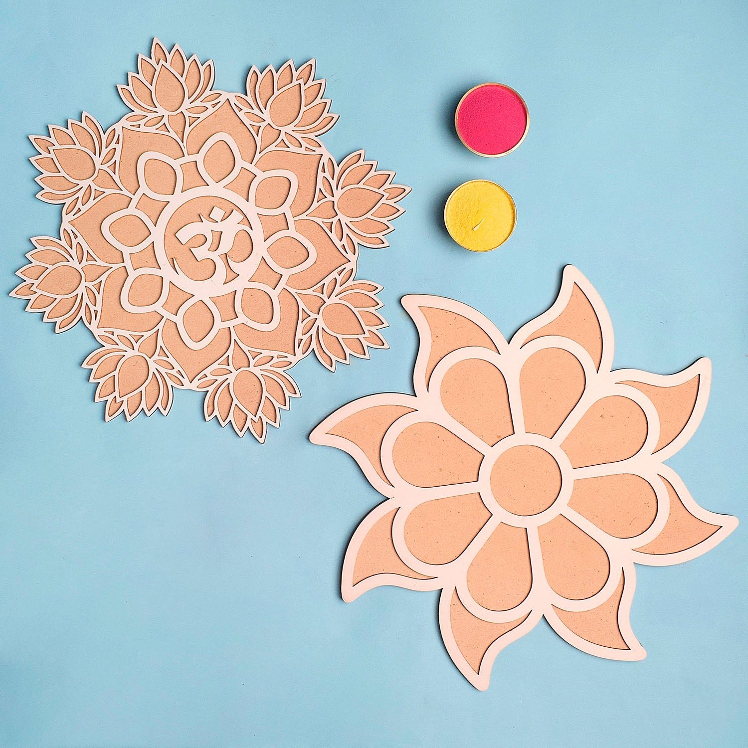• Safe and Reusable: Made from non-toxic materials, our stencils are safe to use, and the mat is easy to clean and reuse for future celebrations. Decorate Any Surface: Not limited to just floors, you can also use our rangoli kit to decorate tables, countertops, or any flat surface to enhance the festive ambiance.