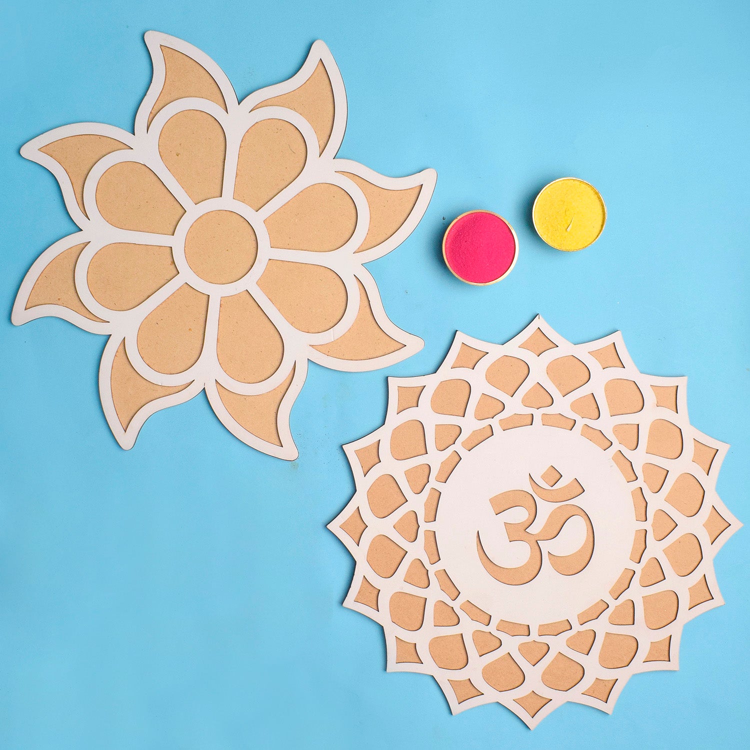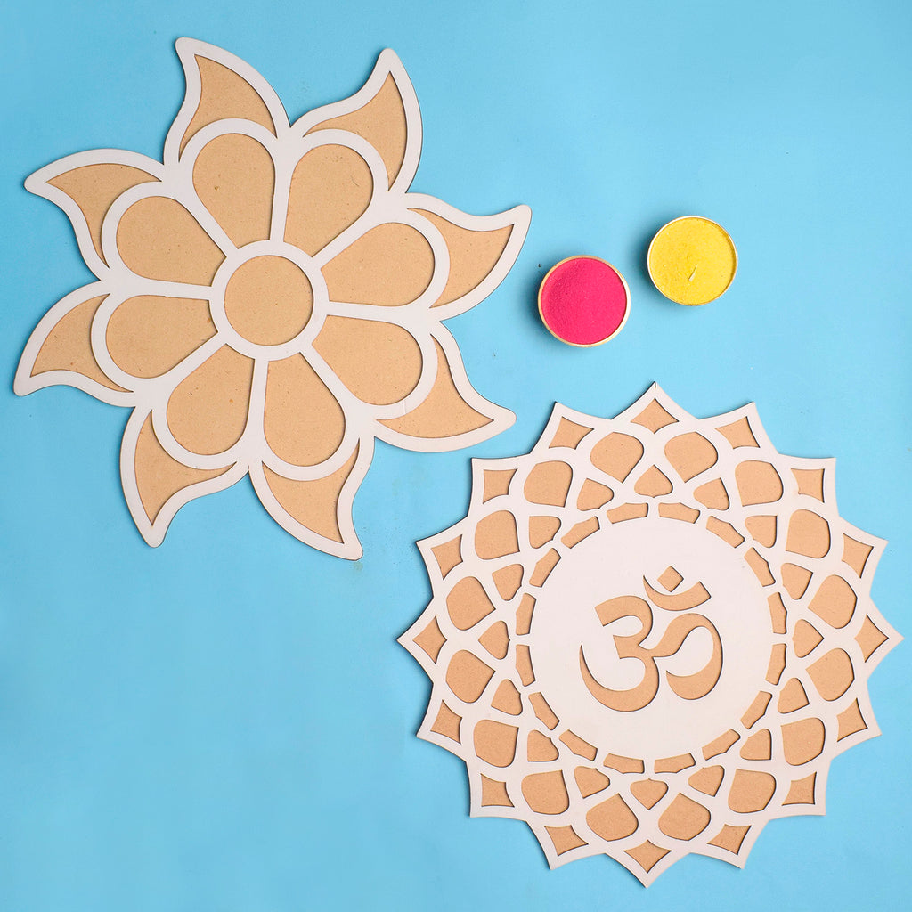 • Package Contain: Set of 2 Different Design Portable Rangoli Stencils with 5 rangoli pouches.
