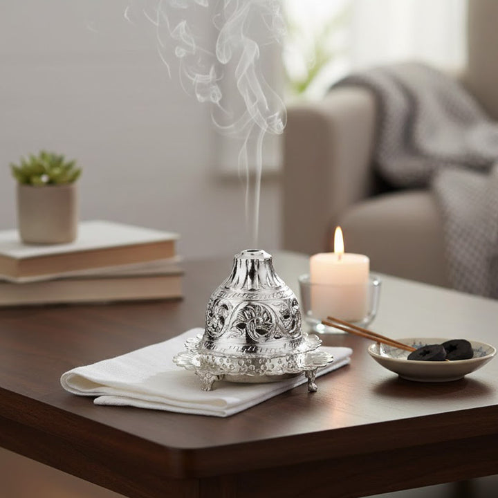 Dhoop Dani Loban – Silver Plated Incense Burner | Satvikworld.com