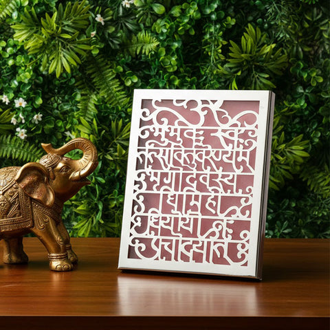 Mantra Frame with Stand Showpiece: Captivate your guests with our mantra frame showpiece. Crafted with meticulous details, this showpiece elegantly showcases auspicious mantras or spiritual verses. The accompanying stand adds a touch of refinement, making it a splendid gift for any occasion. Share positivity and serenity with this divine masterpiece.